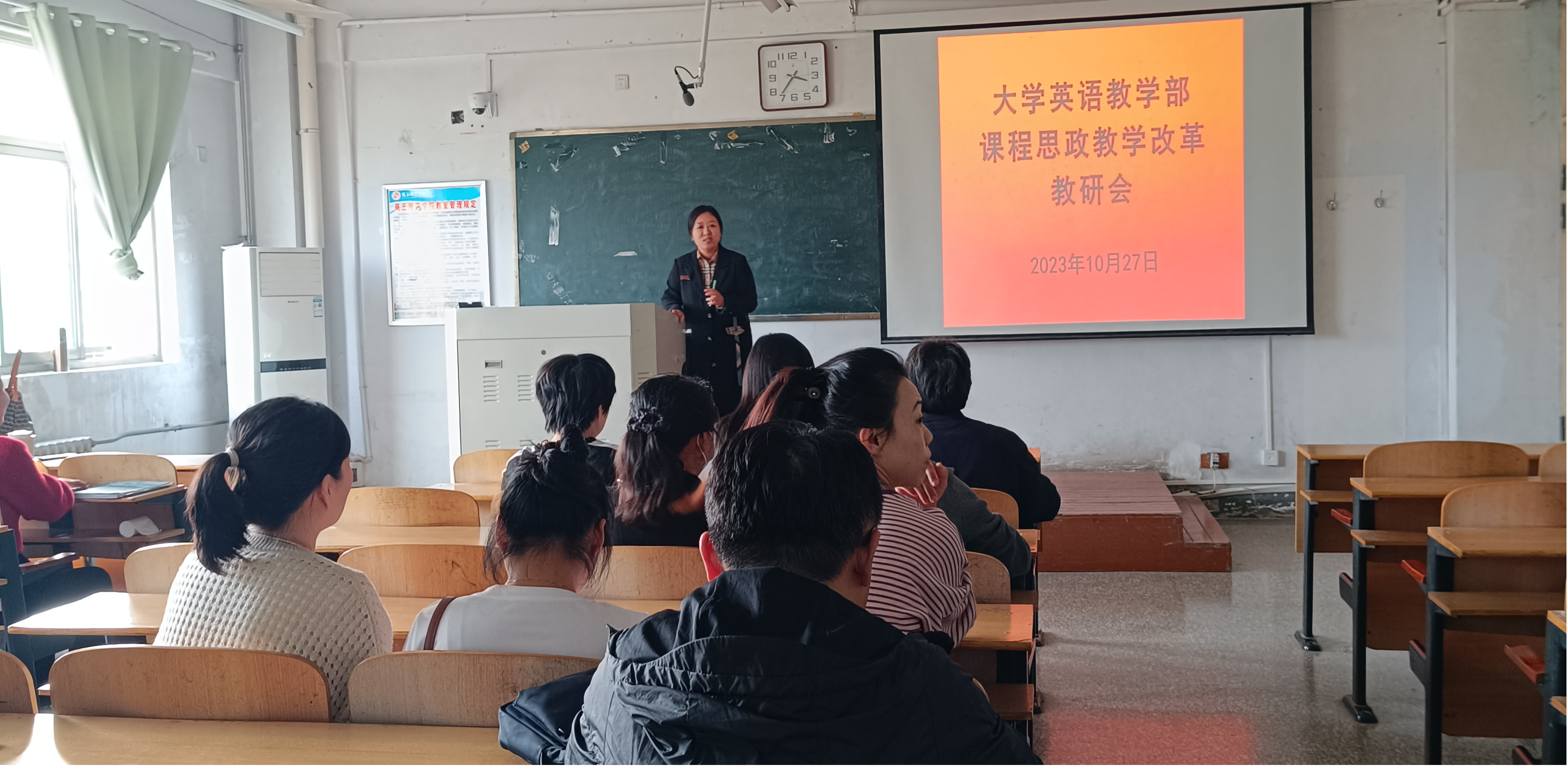 10月27日下午,天天精品视频免费观看大学英语教学部全体老师在智圆楼317教室组织召开了一场以“守正创新、铸魂育人”主题为课程思政教学改革的教学研讨会。本次教研会由大二组张晓蓓老师主持。