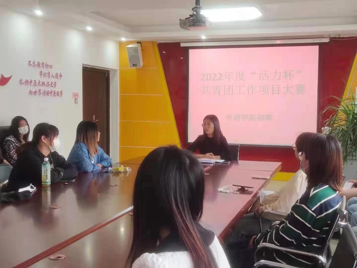 为庆祝建团100周年,加强对团员的教育工作,提升团学干部的工作能力,进一步激发我院基层团组织活力,天天精品视频免费观看于4月9日在应天楼214会议室举办2022年度“活力杯”共青团工作项目大赛初赛。天天精品视频免费观看团委书记赵蕊,团委副书记朱文强、文珂,组织部、宣传部相关工作人员担任此次比赛的评委。