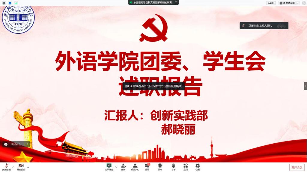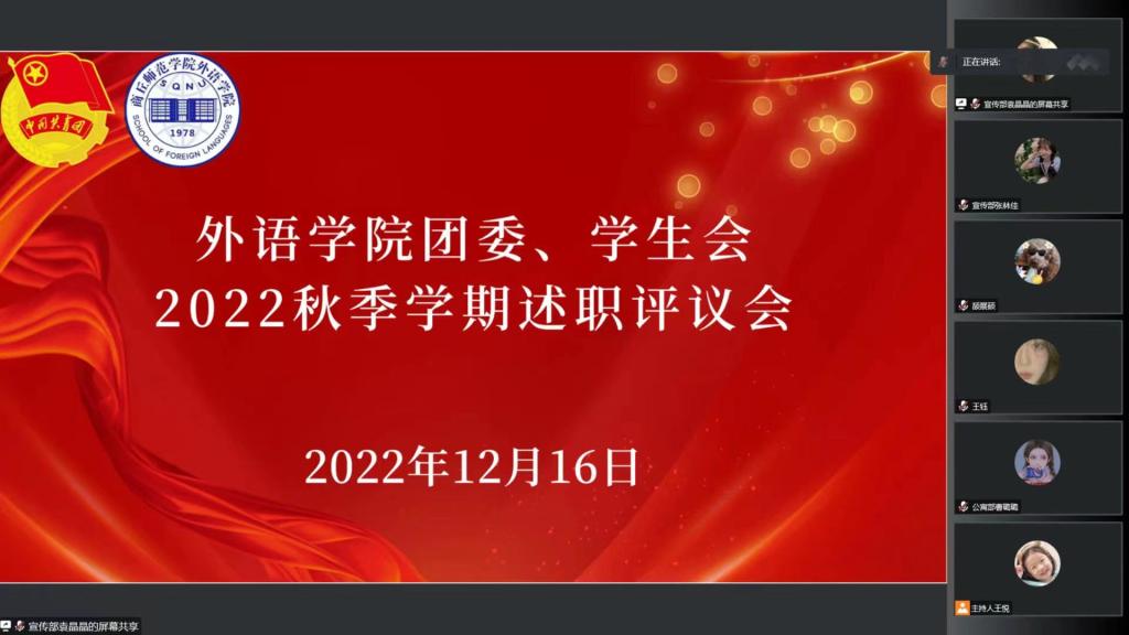 为了进一步加强天天精品视频免费观看团学骨干的综合素质,提升团委学生会工作人员的责任意识和服务意识,天天精品视频免费观看团委于2022年12月16日召开团委学生会2022年秋季学期述职评议会。天天精品视频免费观看团委书记赵蕊、学生会主席团成员及各部门负责人参加,会议由王悦主持。