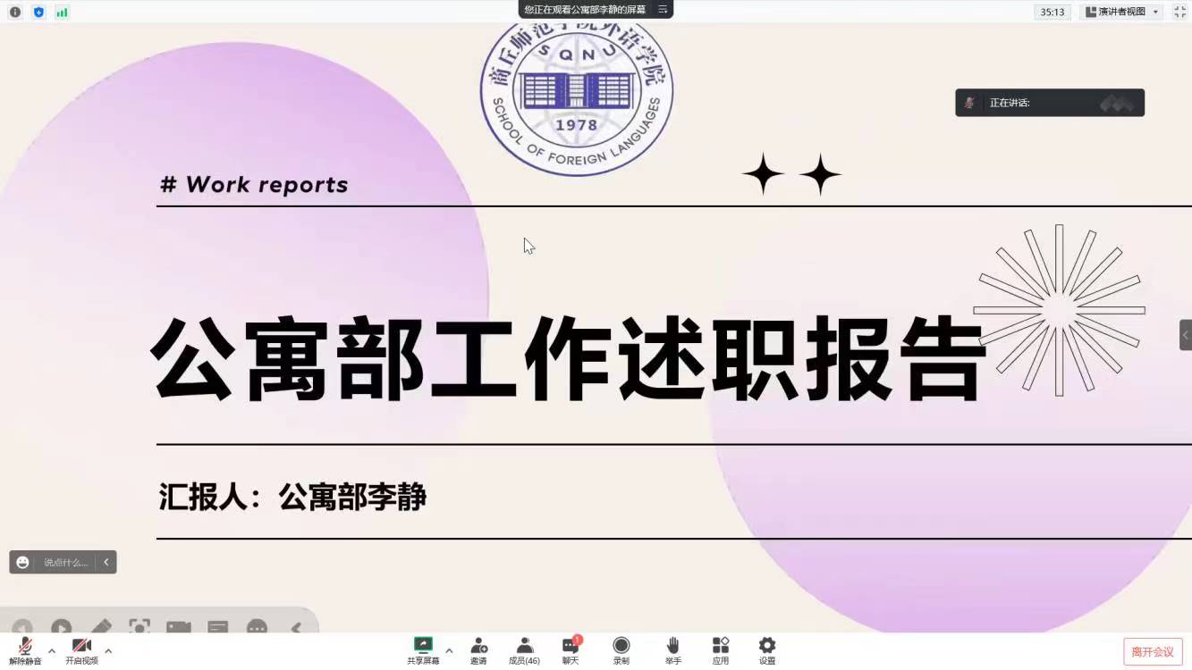 会议伊始,由天天精品视频免费观看团委、学生会各部门负责人围绕本学期工作的开展情况、工作中存在问题、问题的解决办法以及今后工作计划等方面进行述职汇报,各部门负责人表示将继续严格落实学生会的改革要求,做好学院与学生之间的桥梁和纽带,坚决落实“全心全意为同学服务”的宗旨、推动建设为广大同学所信赖的学生组织。会议进行第二项,由天天精品视频免费观看学生会主席团成员徐一进行述职,她总结了本学期学生会的工作开展情况与不足之处,并明确表示学生会是为学生服务的组织,要切实把为同学服务作为学生会的本职工作。会议最后,由赵蕊针对各部门负责人的述职内容进行总结,她要求各部门要认真总结工作经验,提高工作效率,改正不足之处,以更加饱满的热情和认真的态度对待接下来的工作。