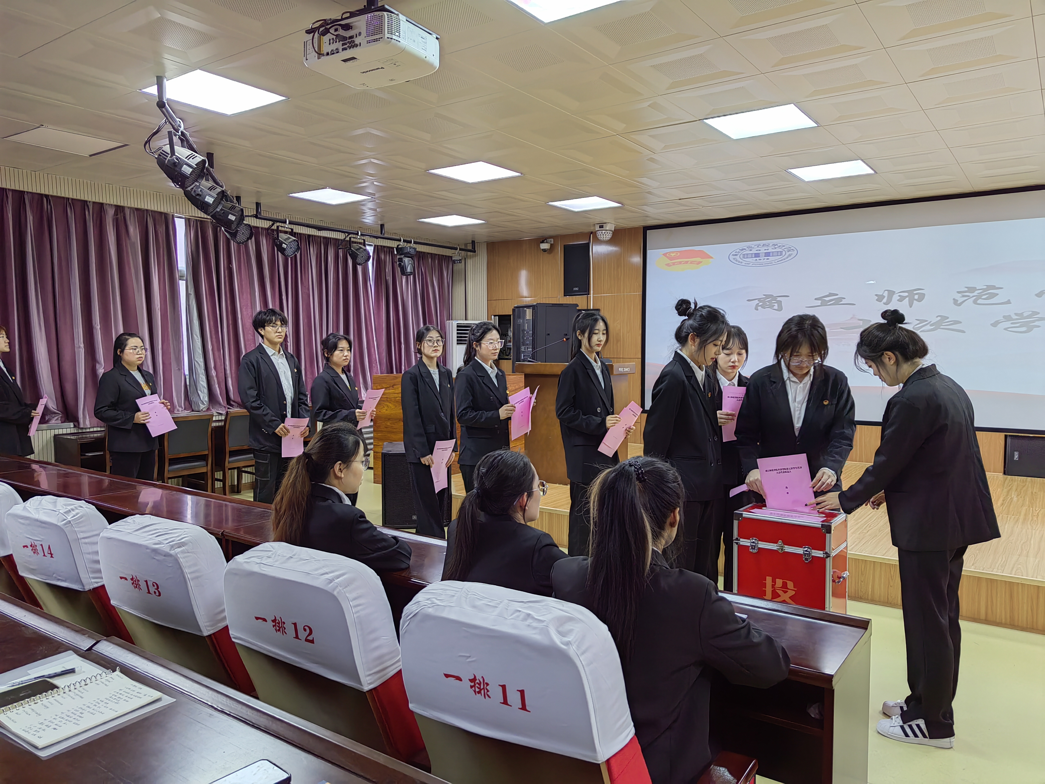 6月8日,天天精品视频免费观看第七次学生代表大会在智圆楼219多功能厅隆重召开。天天精品视频免费观看团委书记赵蕊、校学生会主席团成员文珂出席会议,各班学生代表共计133人参加大会。会议共有十项内容,由王悦主持。