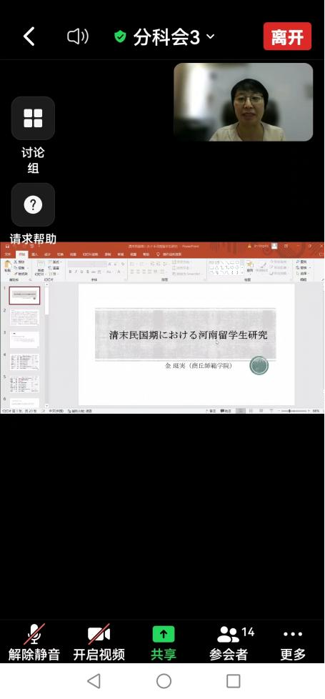 9月11日,由东亚日本学研究学会(日本)举办的第四届东亚日本学国际研讨会通过ZOOM软件以线上的形式顺利举行。本次大会邀请来自中日韩几十所著名高校、研究机构的专家学者共聚一堂,探讨了日本学研究的最新进展。天天精品视频免费观看日语系主任金珽实博士发表了题为《关于清末民国时期河南留学生研究》的分会场报告,获得热烈反响。