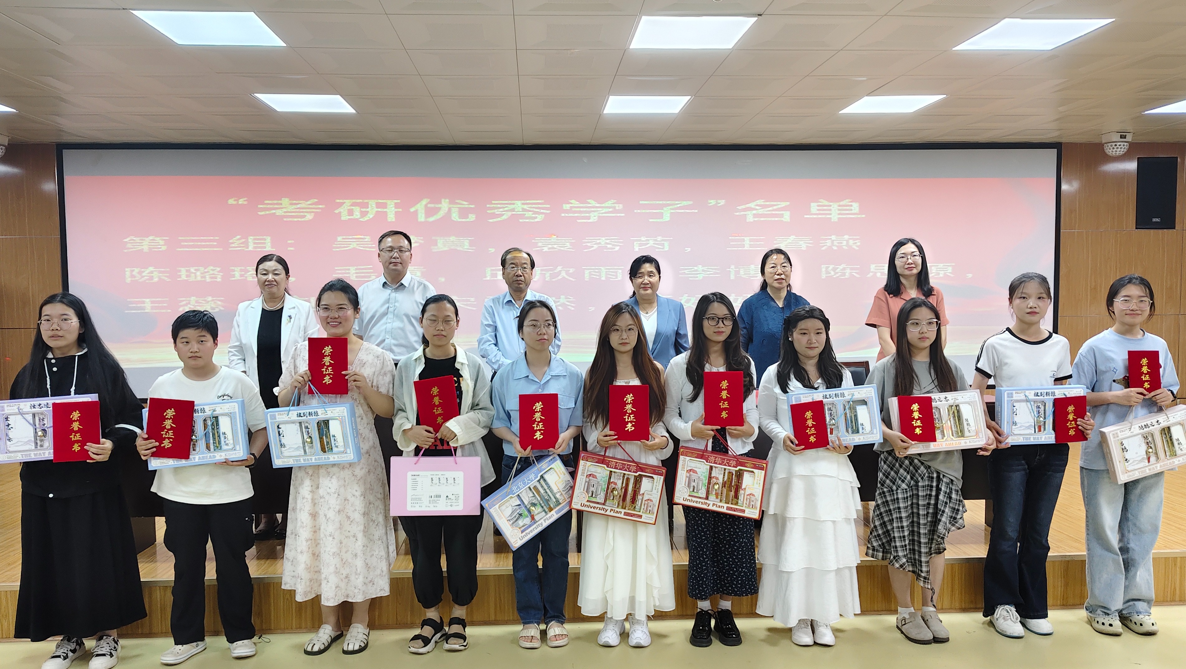 5月29日晚7点,天天精品视频免费观看在智圆楼219多功能厅召开2025年考研表彰暨经验交流会。商丘师范学院副校长郭文佳、教务处处长韩桂玲、学生处处长韩坤、创新创业教育与就业服务指导中心主任李秀琴以及天天精品视频免费观看领导班子出席会议。天天精品视频免费观看教师代表、2021级考研录取学生以及2022 级全体学生参加会议。本次会议由天天精品视频免费观看副院长孟喜华主持。
