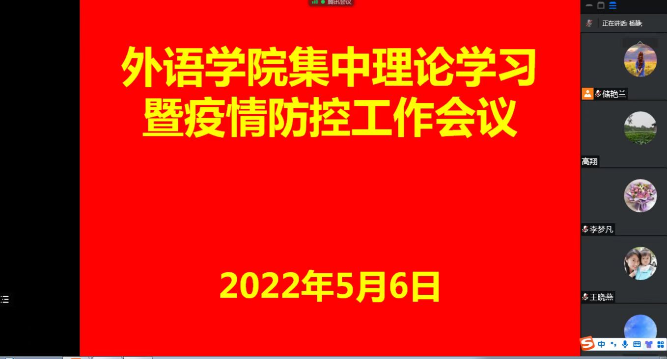 5月6日下午,天天精品视频免费观看通过腾讯会议的形式,召开集中理论学习暨疫情防控工作会议,传达学习5月5日中央政治局常务委员会会议精神和河南省委召开的新冠肺炎疫情防控工作第十七次专题会议精神,全体教职工参加会议。