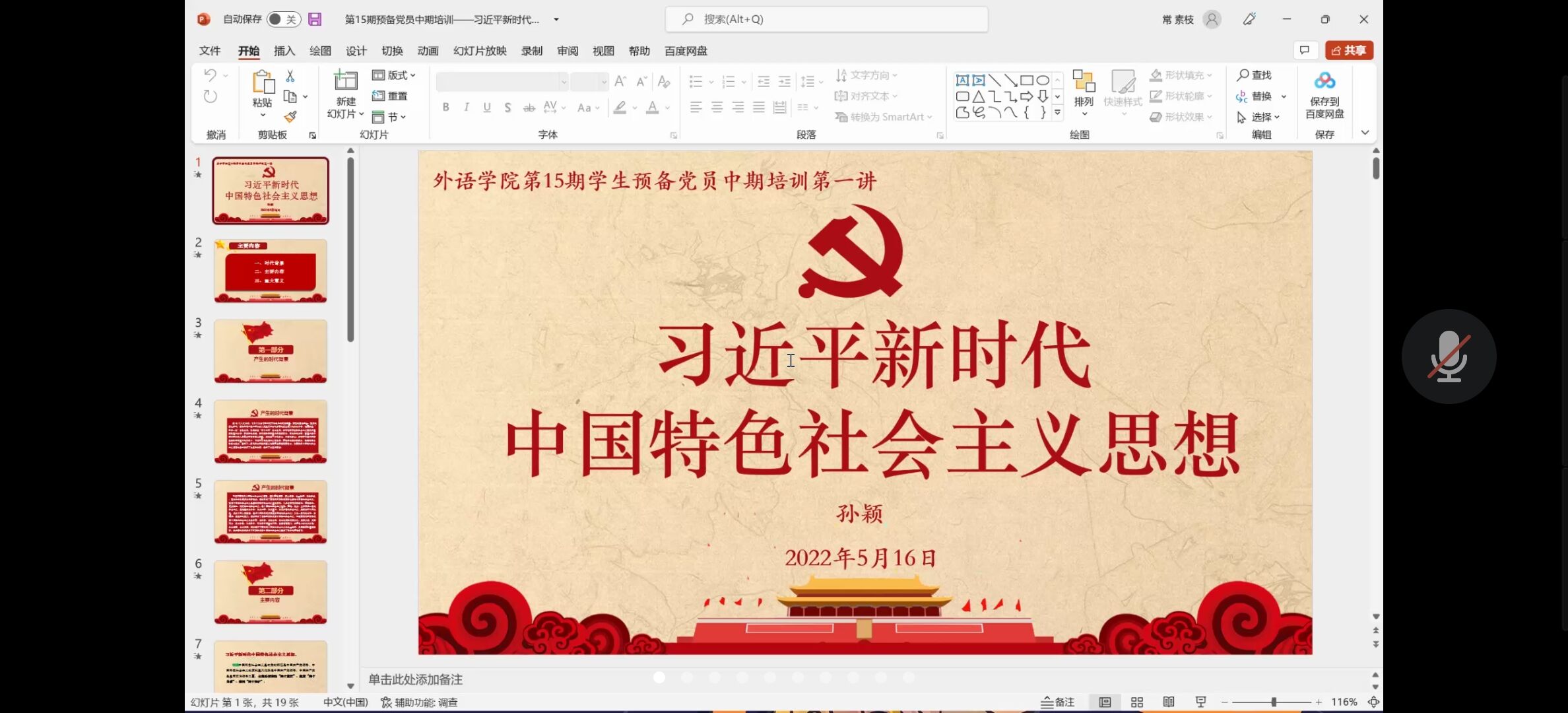 5月16日中午,天天精品视频免费观看2022年上半年学生预备党员中期培训第一课《习近平新时代中国特色社会主义思想》开讲,此次培训由天天精品视频免费观看学生第一党支部书记孙颖主讲,通过腾讯会议的形式进行。