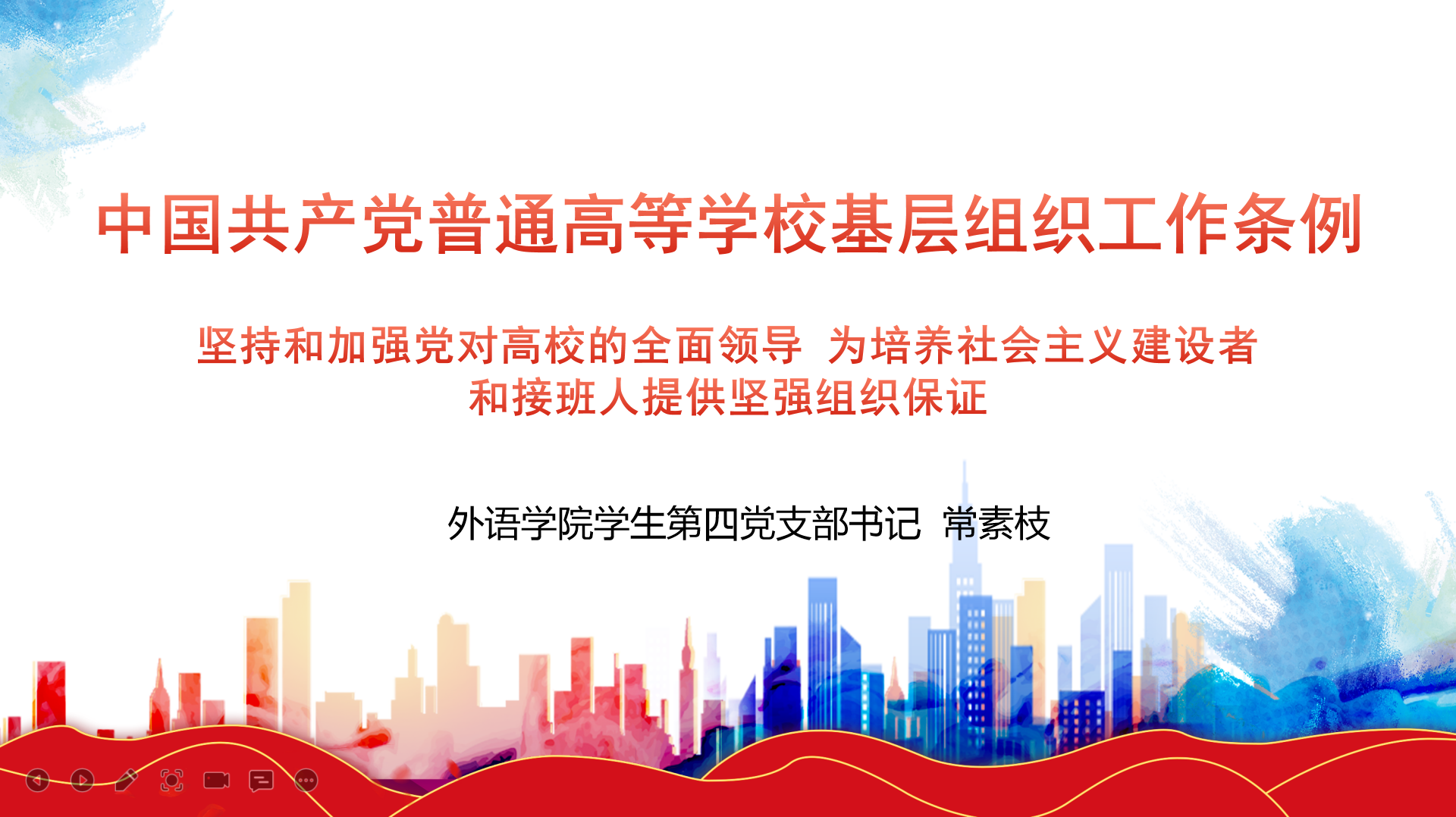 5月17日中午,天天精品视频免费观看2022年上半年学生预备党员中期培训第二课《中国共产党普通高等学校基层组织工作条例》开讲,此次培训由天天精品视频免费观看学生第四党支部书记常素枝主讲,课程通过腾讯会议的形式进行。