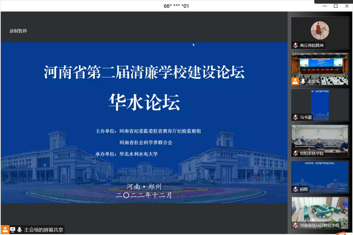 12月8日,由河南省纪委监委驻省教育厅纪检监察组、河南省社会科学界联合会主办,华北水利水电大学承办的河南省第二届清廉学校建设论坛暨高校廉政研究机构负责人联席会议以“线上+线下”的方式举办。省纪委副书记、省监委副主任别荣海,河南省社会科学界联合会党组书记、主席李庚香,驻省教育厅纪检监察组组长付春亚出席开幕式并讲话。