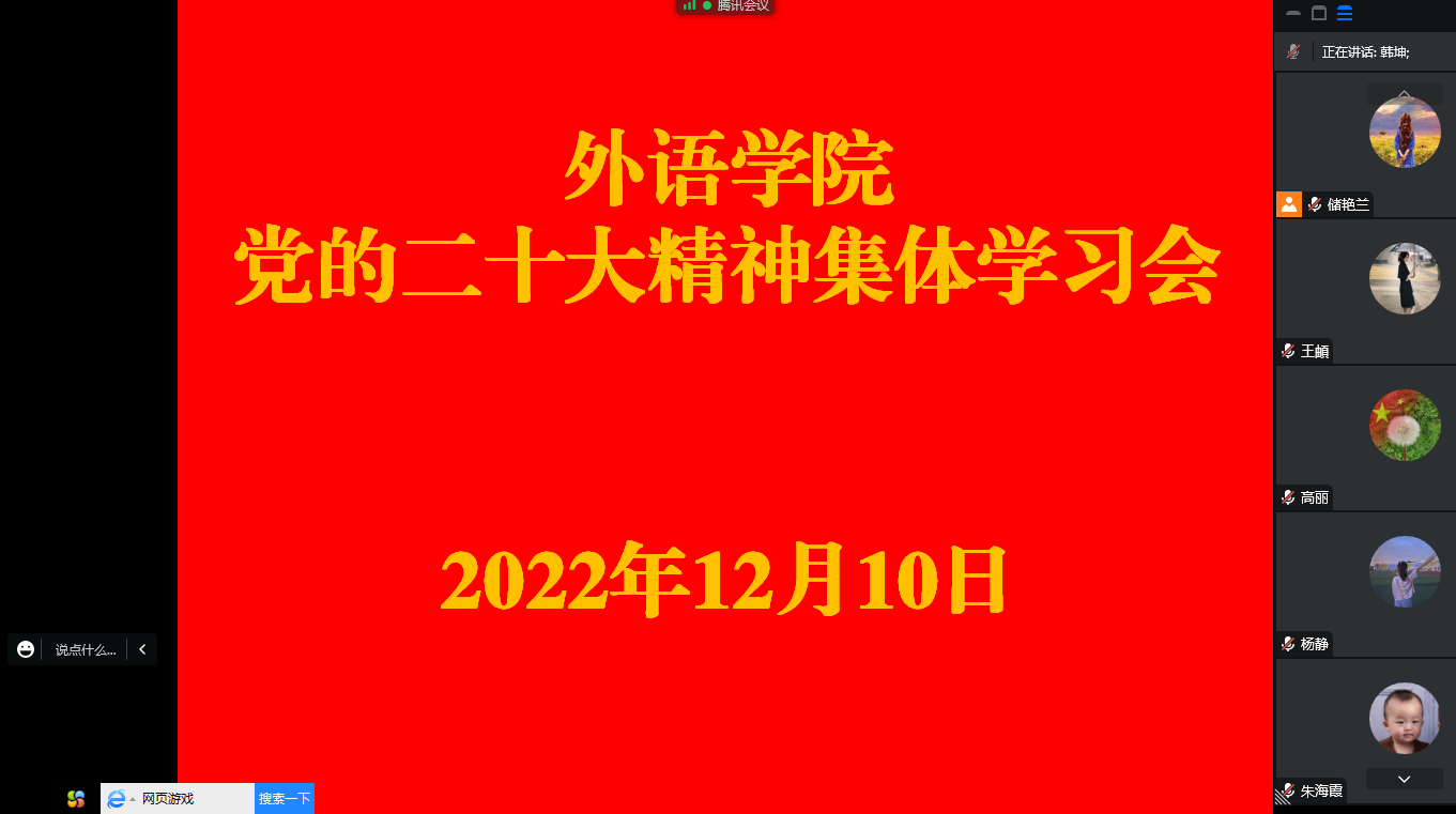12月10日上午,天天精品视频免费观看采取线上腾讯会议方式召开党的二十大精神集中学习宣讲会,全体教职工参会。