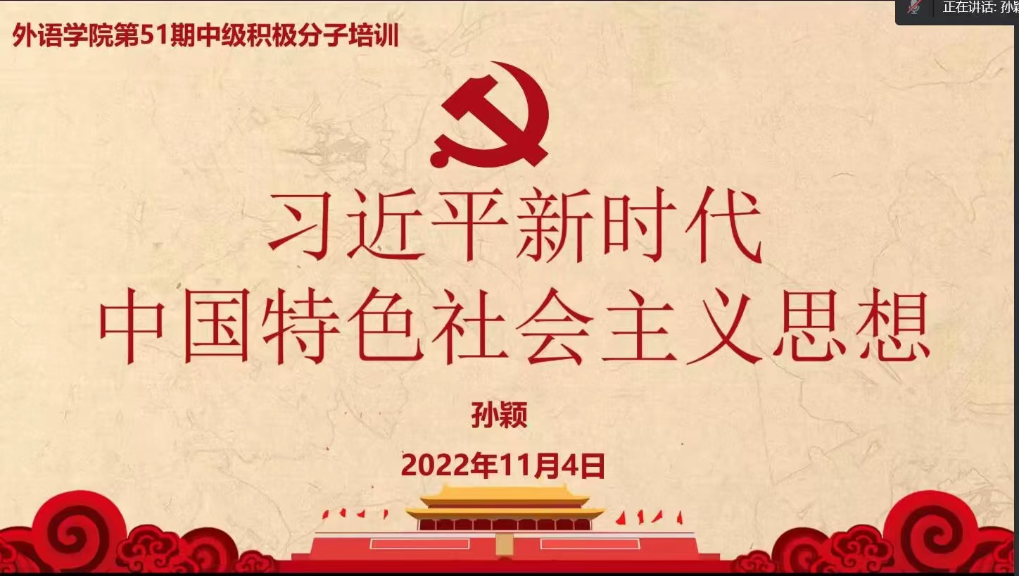 为提高入党积极分子的政治理论水平,保证党员发展质量。11月4日晚,天天精品视频免费观看学生第一党支部书记孙颖通过腾讯会议的形式为第51期入党积极分子讲授专题党课第二讲——习近平新时代中国特色社会主义思想。培训班全体学员参加。