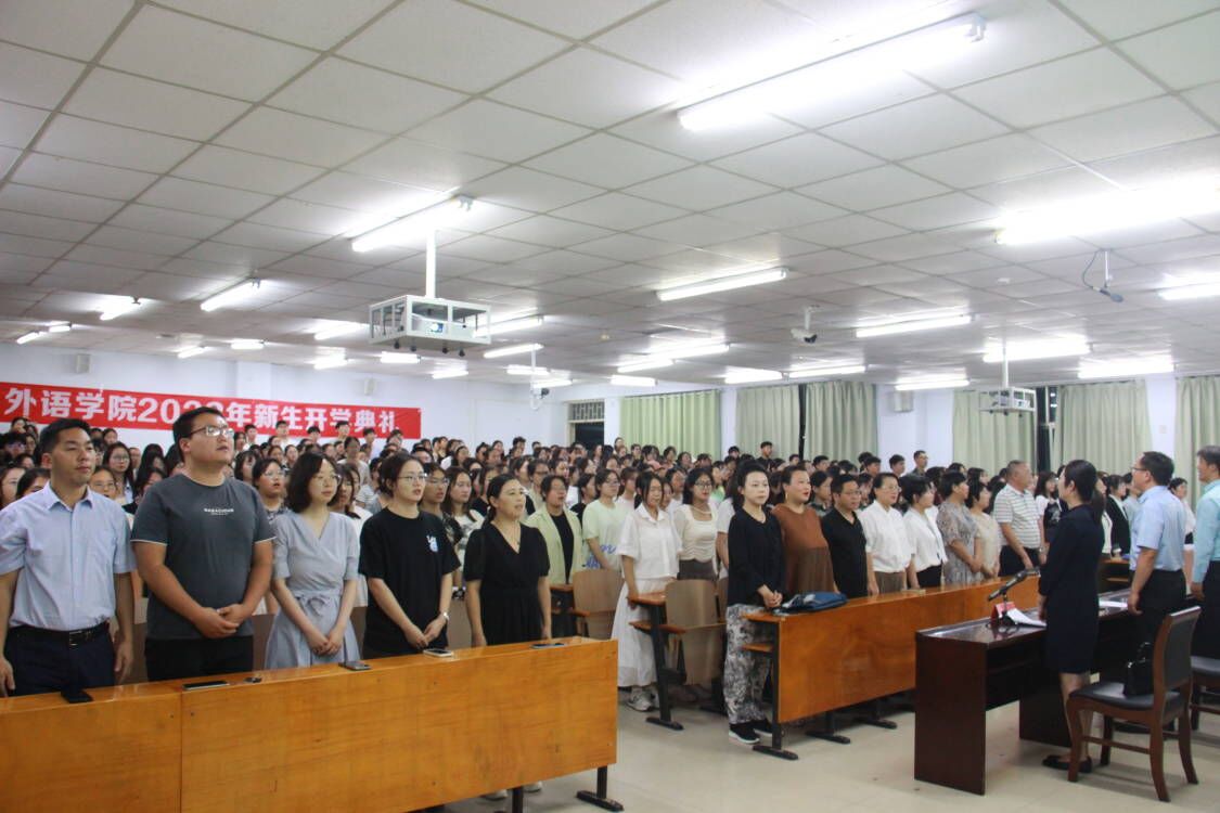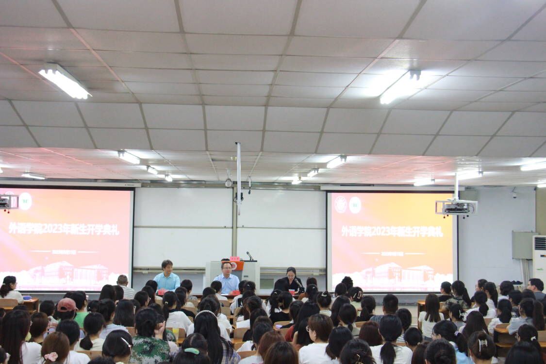 韩坤首先致辞,他对2023级新生表示了热烈的欢迎,并对商丘的历史文化、商丘师范学院和天天精品视频免费观看的开设专业、学科建设、师资力量等做简要介绍。同时,他对同学们提出三点建议:一是要转变适应、寻找热爱;二是要慎独自律、埋头做事;三是要身心健康、笑对坎坷。他希望大家要胸怀“国之大者”,铭记“应天归德 智圆行方”的校训,“学好外国语,做好中国人”,用外语向世界讲好中国故事、中原故事、商师故事,努力创造属于自己的精彩大学生涯。