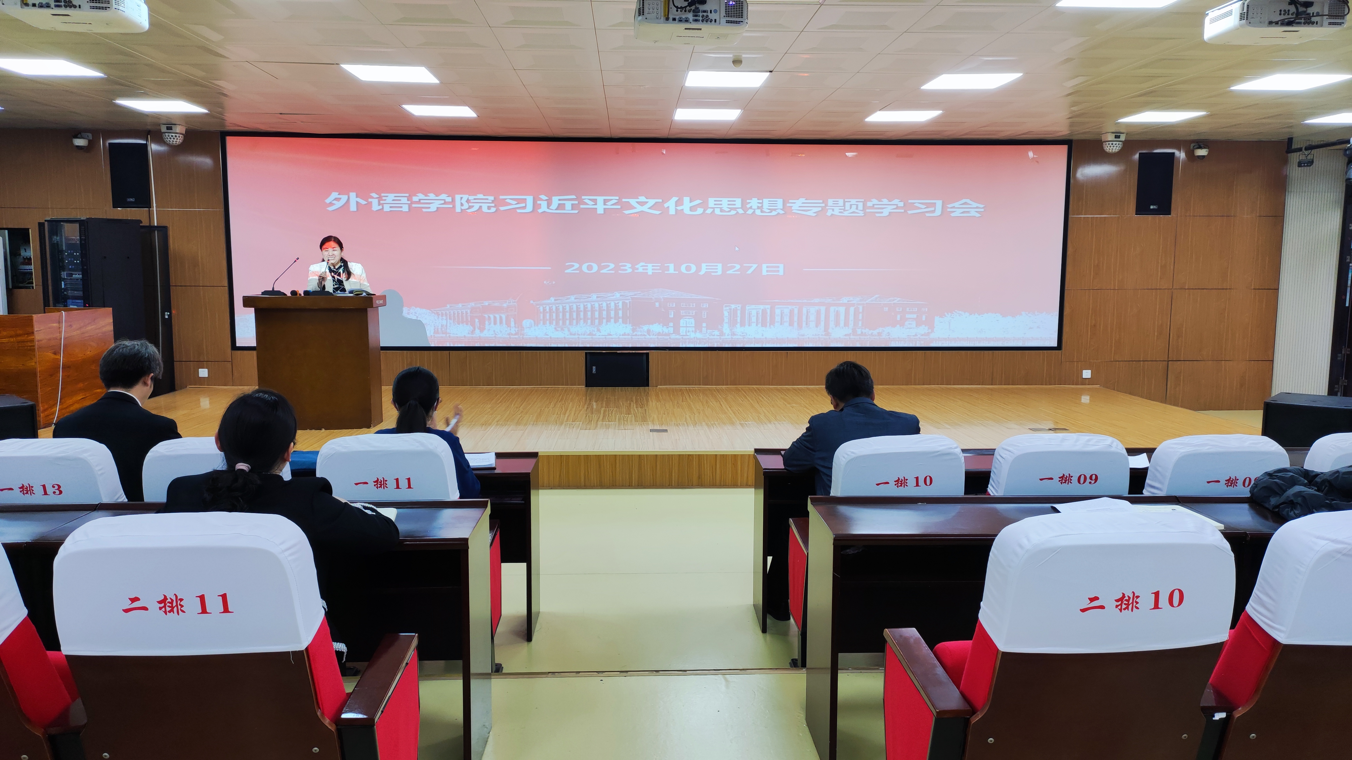 10月27日,天天精品视频免费观看在智圆楼219报告厅召开全体教职工集中理论学习会,深入学习贯彻习近平文化思想。会议由党委书记韩坤主持,学院领导班子成员、全体教职工参加。