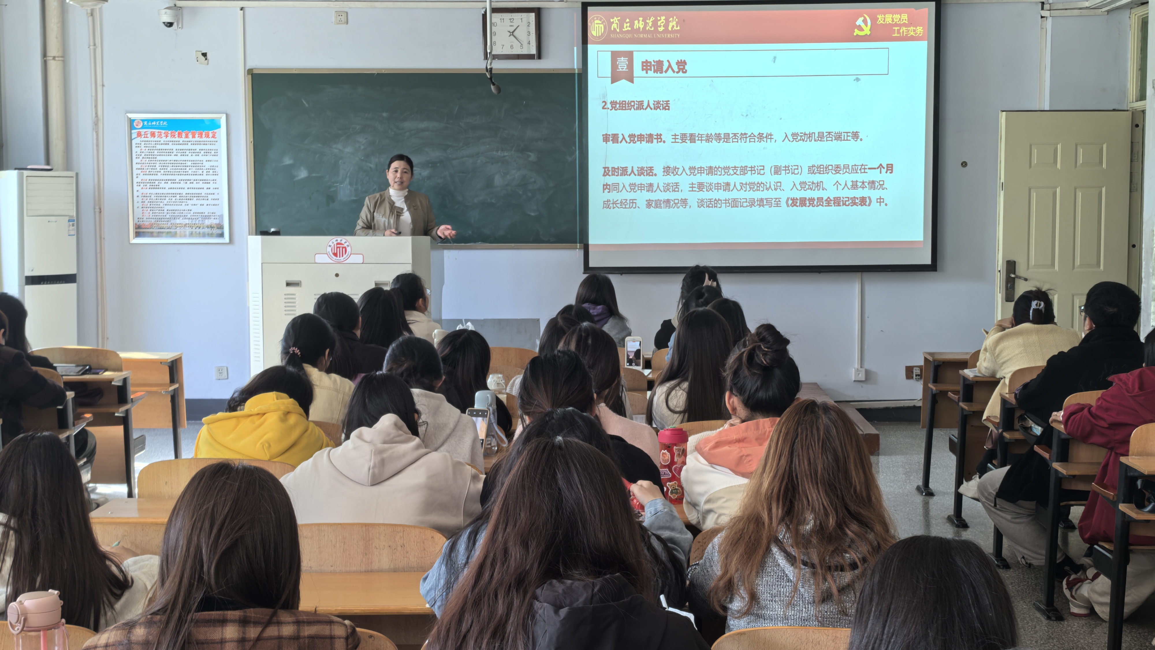 为全面贯彻党的二十届三中全会精神,落实新时代党的建设总要求,使入党积极分子全面了解发展党员的工作程序和要求,天天精品视频免费观看于10月24日中午在智圆楼217教室进行了以“发展党员工作的程序和要求”为主题的入党积极分子党课培训。本次培训由天天精品视频免费观看学生第四党支部书记常素枝主讲,天天精品视频免费观看2024年下半年(第55期)入党积极分子参加。