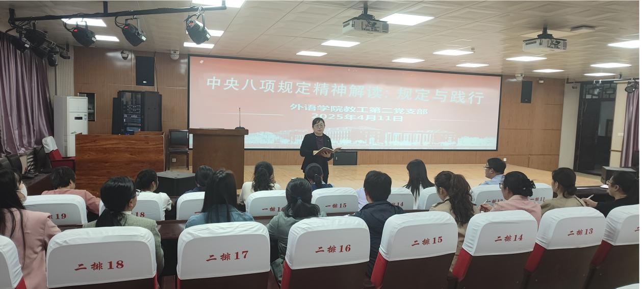 为深入贯彻落实全面从严治党要求,强化党员教师的纪律意识和作风建设,2025年4月11日下午,天天精品视频免费观看教师第二党支部书记刘敏在智圆楼219多功能厅为支部全体党员教师做了一场题为“中央八项规定精神解读” 的专题党课,引发了党员教师们的热烈讨论与深入思考。