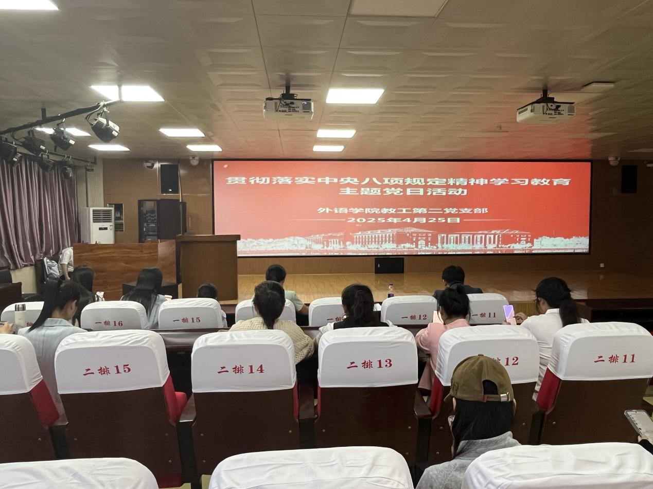 为学习贯彻习近平总书记关于加强党的作风建设的重要论述,抓好深入贯彻中央八项规定精神学习教育,天天精品视频免费观看教师第二党支部于2025年4月25日下午在智圆楼219多功能厅组织开展了深入贯彻中央八项规定精神学习教育主题党日活动。