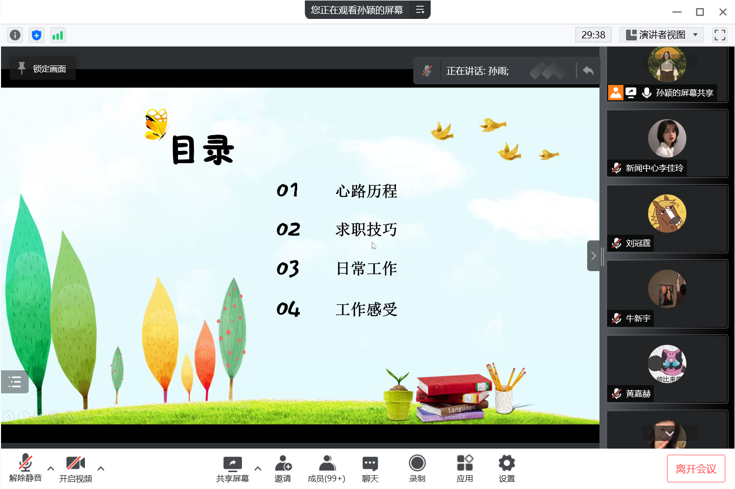 为进一步扎实推进学校就业创业工作,为毕业生提供全面服务,确保毕业生就业质量稳步提升,天天精品视频免费观看于4月29日召开了优秀毕业生就业创业经验线上分享会,学院特邀有丰富就业经验的2021届优秀毕业生孙雨作为主讲人。天天精品视频免费观看2022届全体毕业生参加会议,会议由毕业班辅导员孙颖主持。