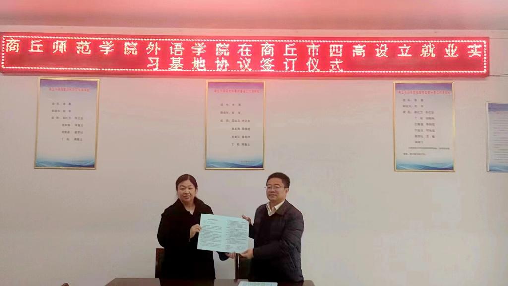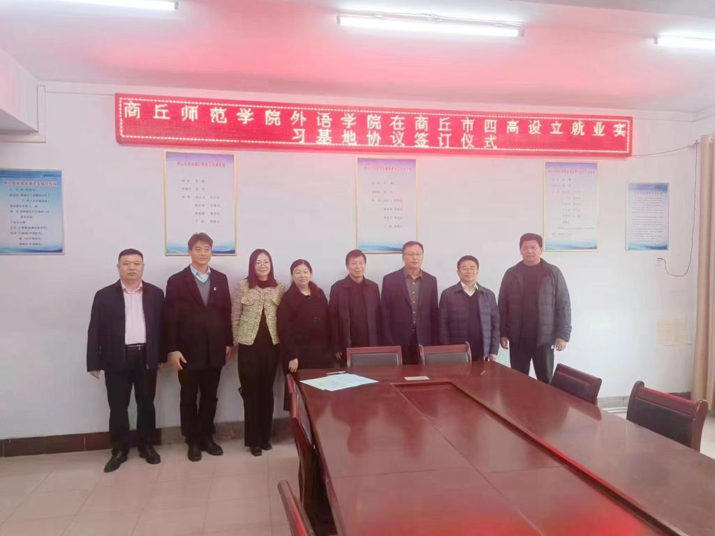座谈会后,双方共同签署了商丘师范学院大学生就业实习基地协议并合影留念。