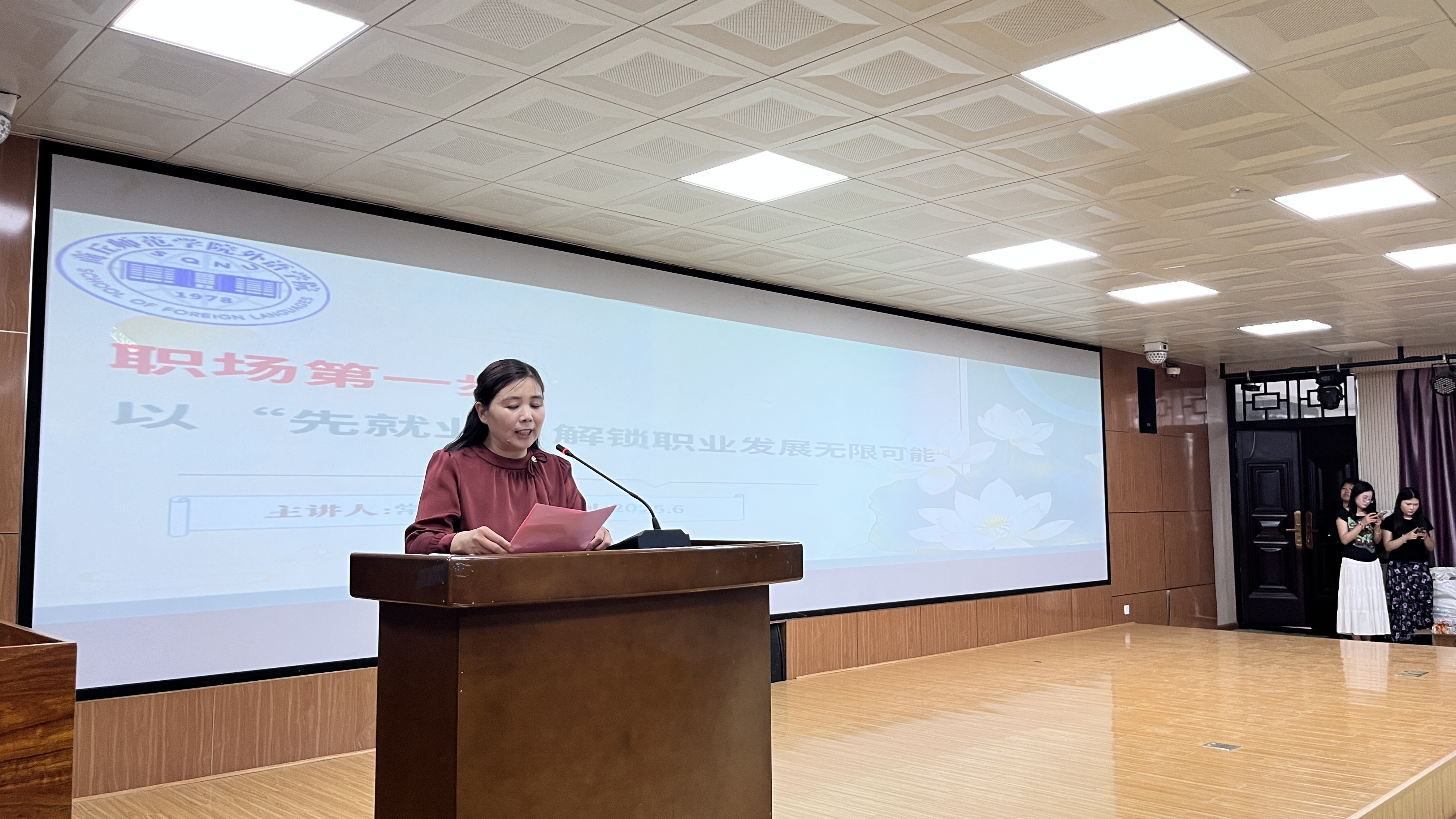 常素枝从2025年全国高校毕业生规模、外语类毕业生占比及AI时代外语类人才就业面临的挑战等分析了当前就业形势,又结合数据分析了考公考研等情况,希望大家分析自身优劣势,结合实际情况谨慎进行选择。接着,她又结合往届毕业生真实案例强调“先就业”的重要性,“先就业”不仅可以帮助毕业生实现经济独立、自由规划生活、降低机会成本,还能学习实用技能、建立人脉资源、提升就业竞争力,更能明确职业方向、实现职业跃迁。她还着重指出树立正确择业观的重要性,提醒毕业生要摒弃不切实际的幻想,企业更看重的是实际工作能力,并鼓励大家积极寻找就业机会,及时关注校招、正规网络招聘平台,提前准备好简历,有针对性地投递。最后,常素枝祝愿全体2025届毕业生都能找到理想的工作,以“先就业”为起点,开启美好职业生涯,书写人生无限可能。