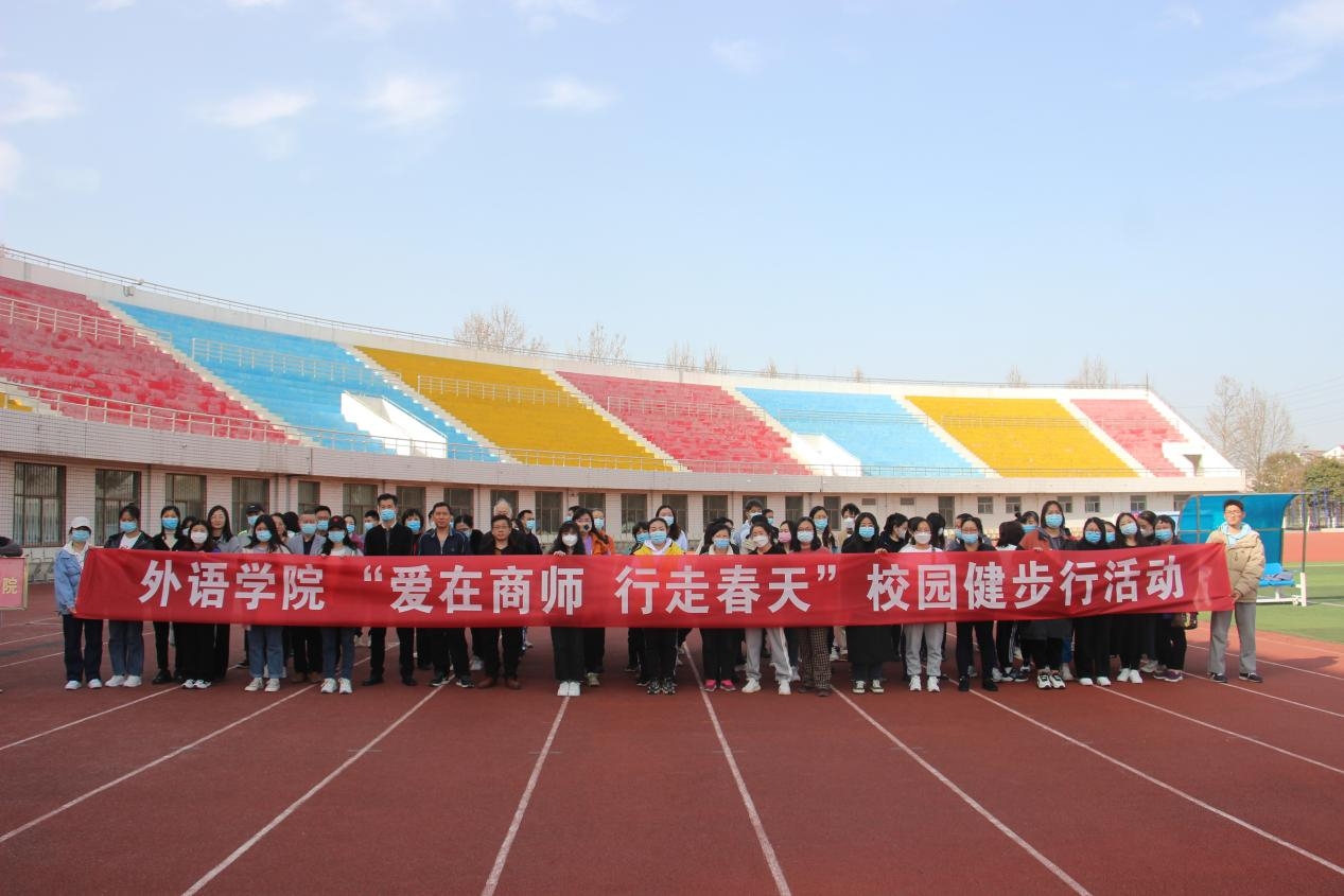2022年3月4日下午,为庆祝即将到来的“三八”国际妇女节,倡导低碳环保、绿色出行的健康生活方式,天天精品视频免费观看在商丘师范学院梁园校区田径运动场举行了“爱在商师,行走春天”校园健步行活动。学院领导班子和全体教职工参加了此次活动。