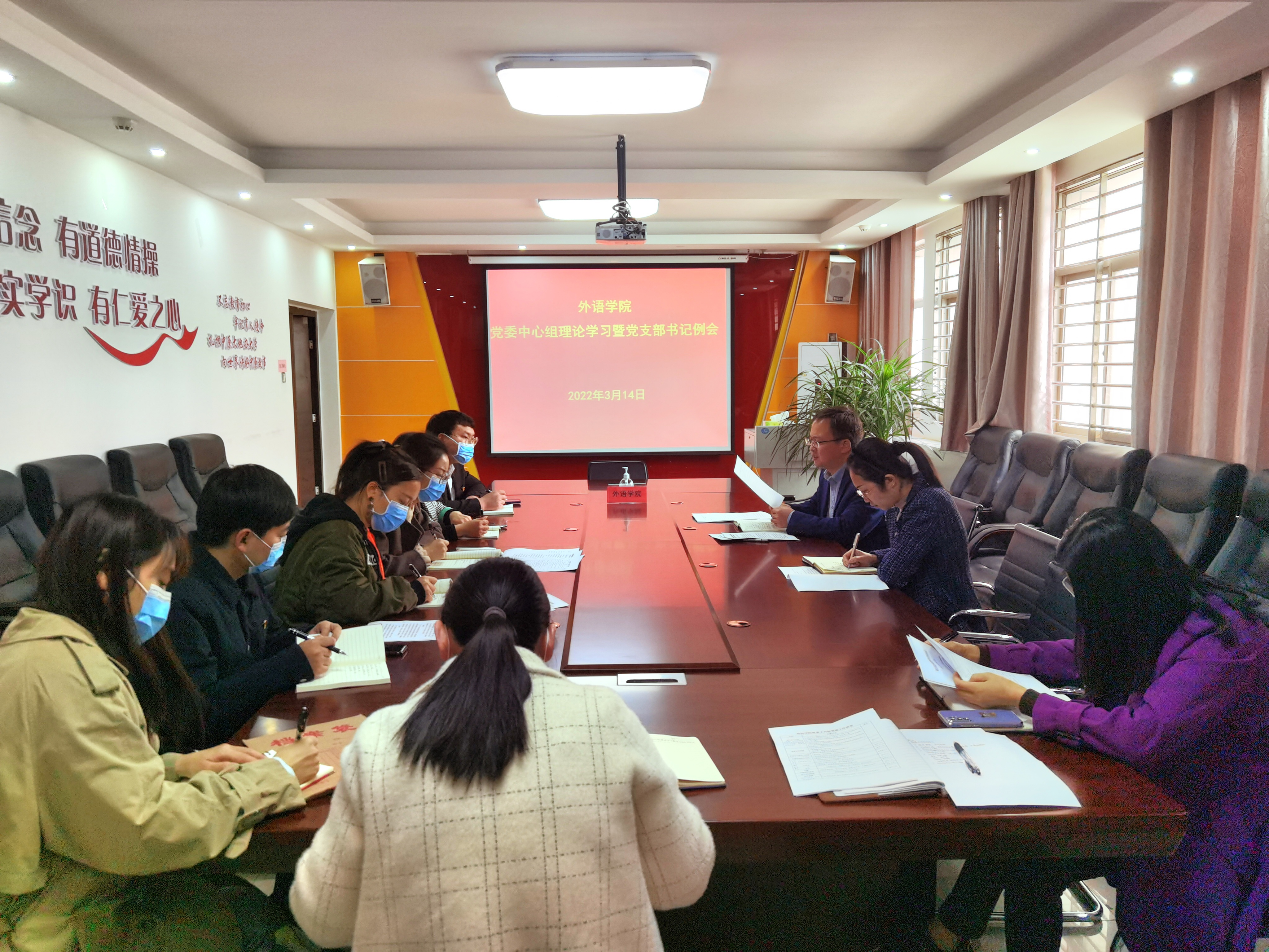 3月14日上午,天天精品视频免费观看于应天楼214会议室召开党委中心组理论学习暨党支部书记例会,学院领导班子成员、科级干部、各党支部书记等有关人员参加会议,学院党委书记韩坤主持会议。