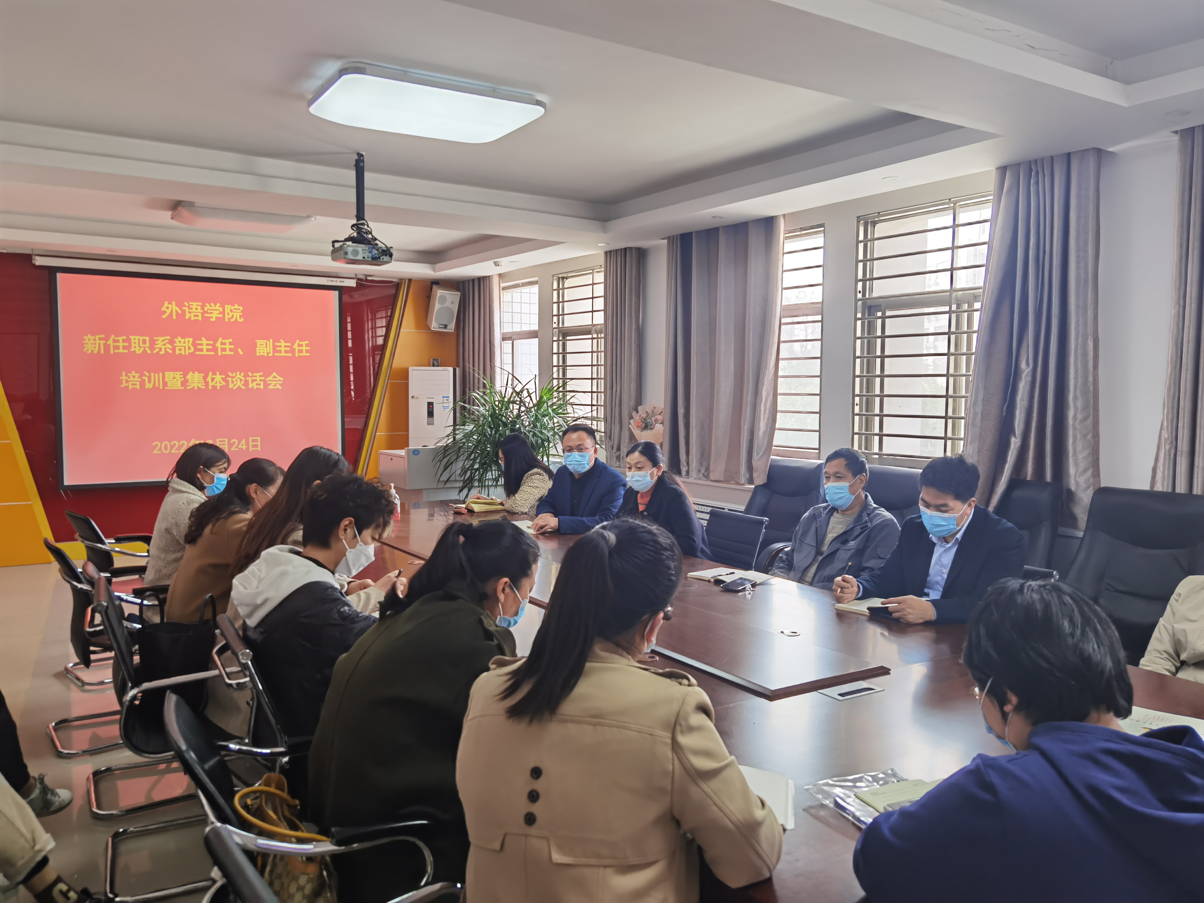 3月24日下午,我院在应天楼214会议室召开新任职系(部)主任副主任培训暨集体谈话会,学院领导班子成员、全体新任职系(部)主任副主任、科级干部参加会议。会议由学院党委书记韩坤主持。