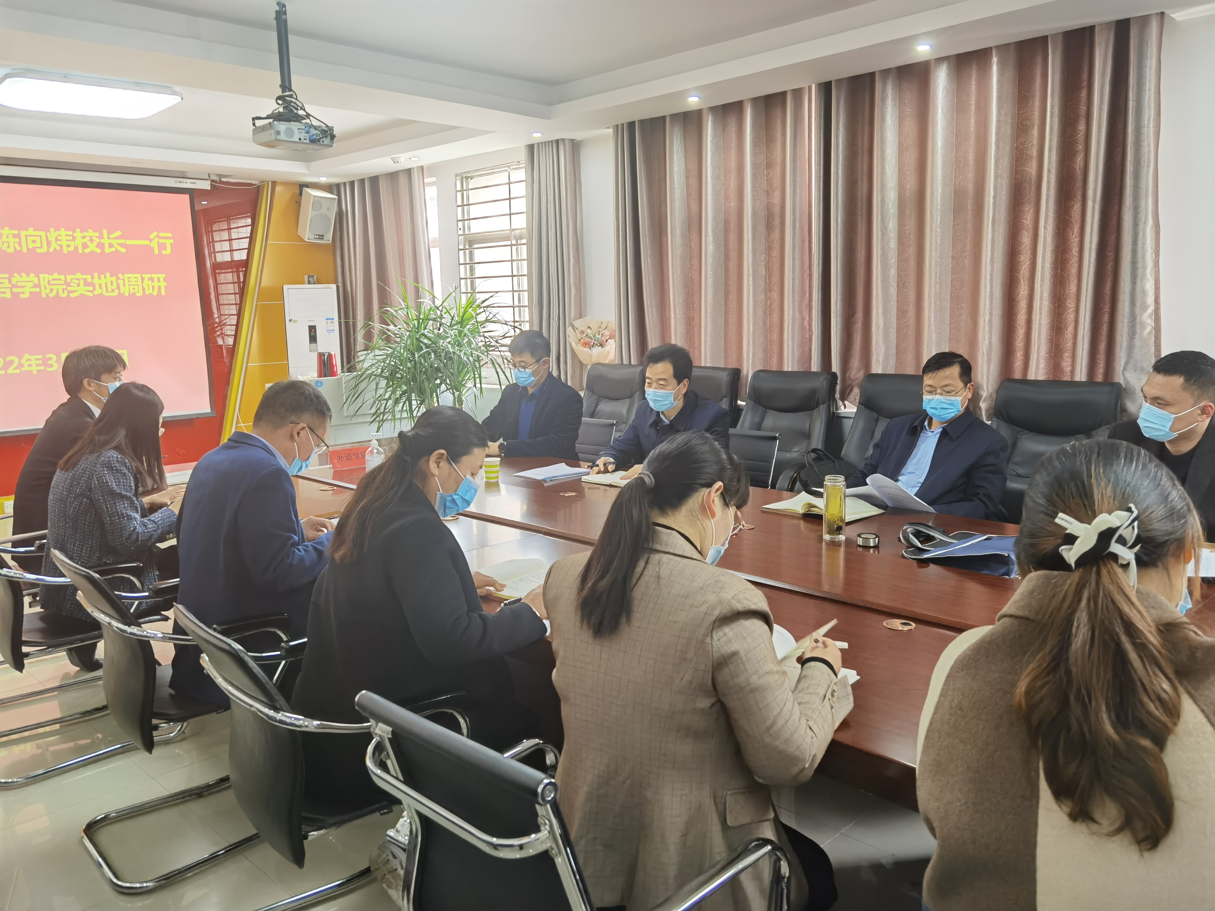 3月31日下午,校长陈向炜、副校长程功鹏在发展规划处、党政办公室有关同志的陪同下,深入天天精品视频免费观看开展“能力作风建设年”专题调研工作。学院党政领导班子成员、部分系(部)主任、教师和学生代表参加调研座谈。