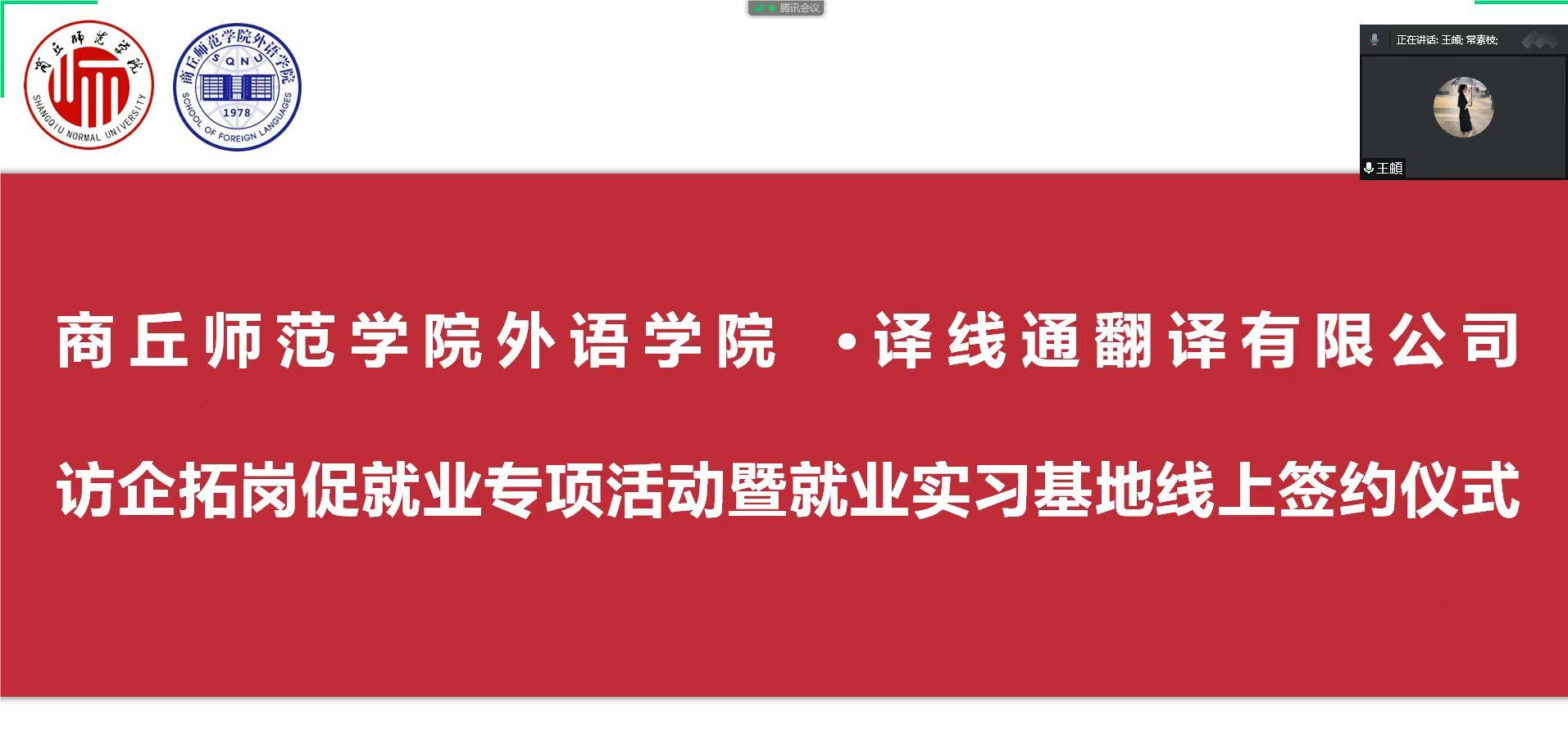 为应对疫情对毕业生就业带来的影响,促进毕业生实现充分就业。8月15日,天天精品视频免费观看与译线通翻译有限公司举办访企拓岗促就业专项活动暨就业实习基地线上签约仪式,活动通过线上线下相结合的方式进行。