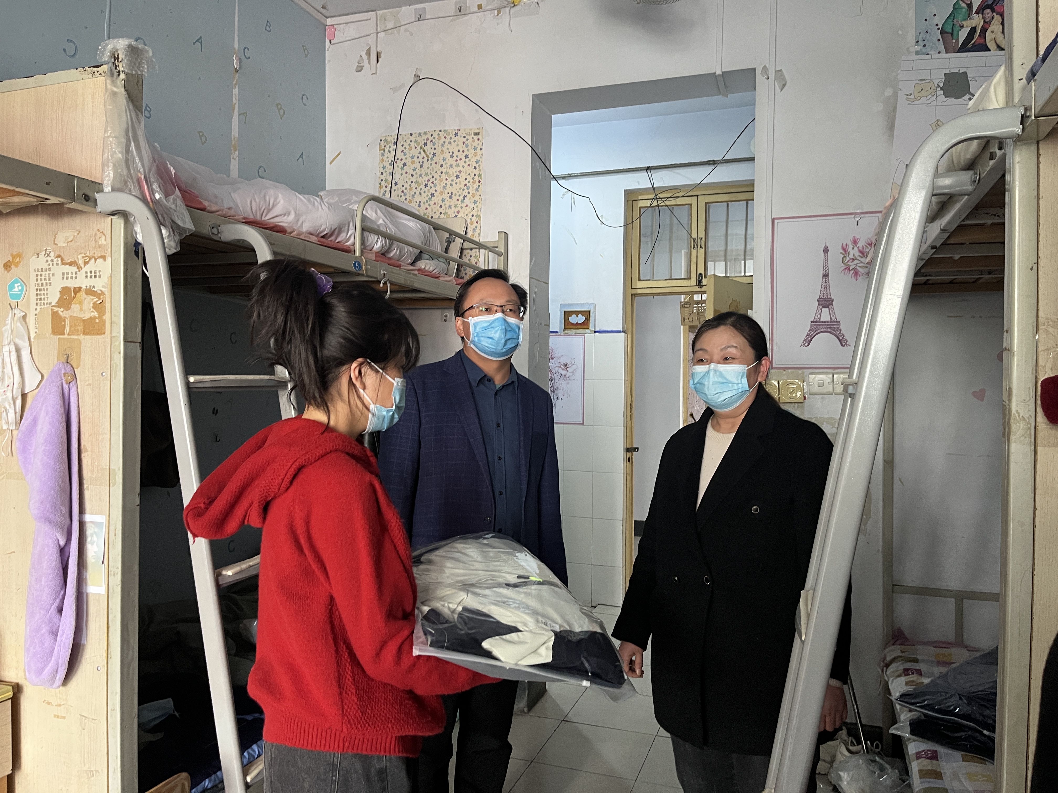 11月23日中午,天天精品视频免费观看党委书记韩坤、院长孙艳玲一行深入2022级学生宿舍走访慰问,了解学生的学习生活情况,增强资助育人实效,开展“冬日送暖 情满寒冬”送温暖活动。