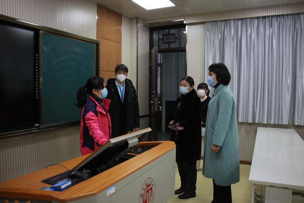 在智圆楼先后查看了学生教室、同声传译实验室、语言实验室及教师办公室等,就教室的桌椅、照明、多媒体设备等提出一系列优化建议,并针对一些问题现场进行解决。院长孙艳玲强调,教室的环境对学生的学习及教师的教学起着至关重要的作用,存在的问题必须在开学前尽快解决。