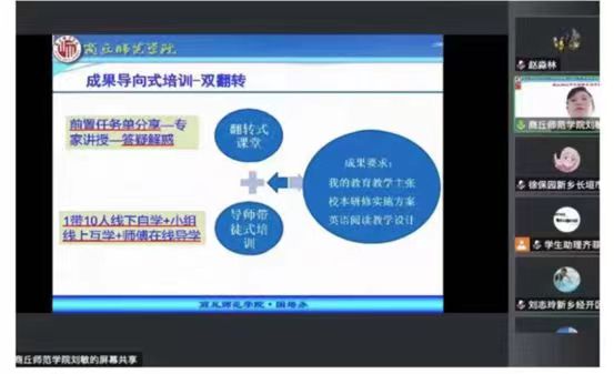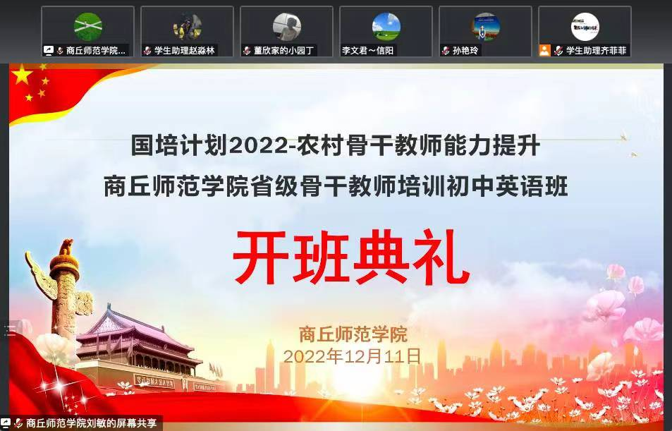 寒冷的冬日,疫情阻断了我们线下研修的脚步,但没有隔绝学员们渴求上进的火热的心。2022年12月11日来自河南省内10个不同地市的50名优秀学员相聚在云端,热血沸腾地参加了由商丘师范学院承办的省级骨干教师培训初中英语班开班典礼,一起深造,共同提高,共同成长。