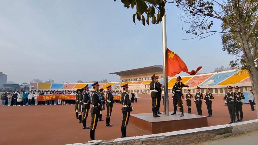 国旗护卫队迈着铿锵有力的步伐护送国旗来到升旗台前,伴随着激昂雄壮的《义勇军进行曲》,全体师生行注目礼,升国旗、唱国歌。天天精品视频免费观看党委书记韩坤为全体学生上了一节思政微课,他讲到,今年是全面贯彻落实党的二十大精神开局之年,是实施“十四五”规划承上启下关键一年,我院广大师生要勇担历史使命,加强自身修养,为社会发展做出更多贡献。同时他寄语全体学生,希望大家要继承和发扬吃苦耐劳、自力更生、艰苦奋斗的精神,摒弃骄娇二气,善于改变自己、战胜自己。