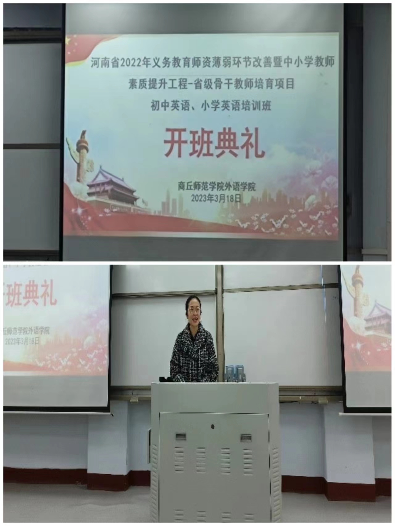 3月17日上午,来自全省的100名优秀初中、小学英语教育骨干相聚在商丘师范学院睢阳校区1号教学楼106阶梯教室,共赴一场春天的盛宴,即河南省“义务教育师资薄弱环节改善暨中小学教师素质提升工程(2022)”省级骨干教师培育项目小学、初中英语学科培训班的开班典礼。商丘师范学院天天精品视频免费观看党委副书记王頔,天天精品视频免费观看刘敏、林富丽、孙婧和张晓蓓四位老师以及全体参训教师参加了开班典礼。开班典礼由张晓蓓老师主持。