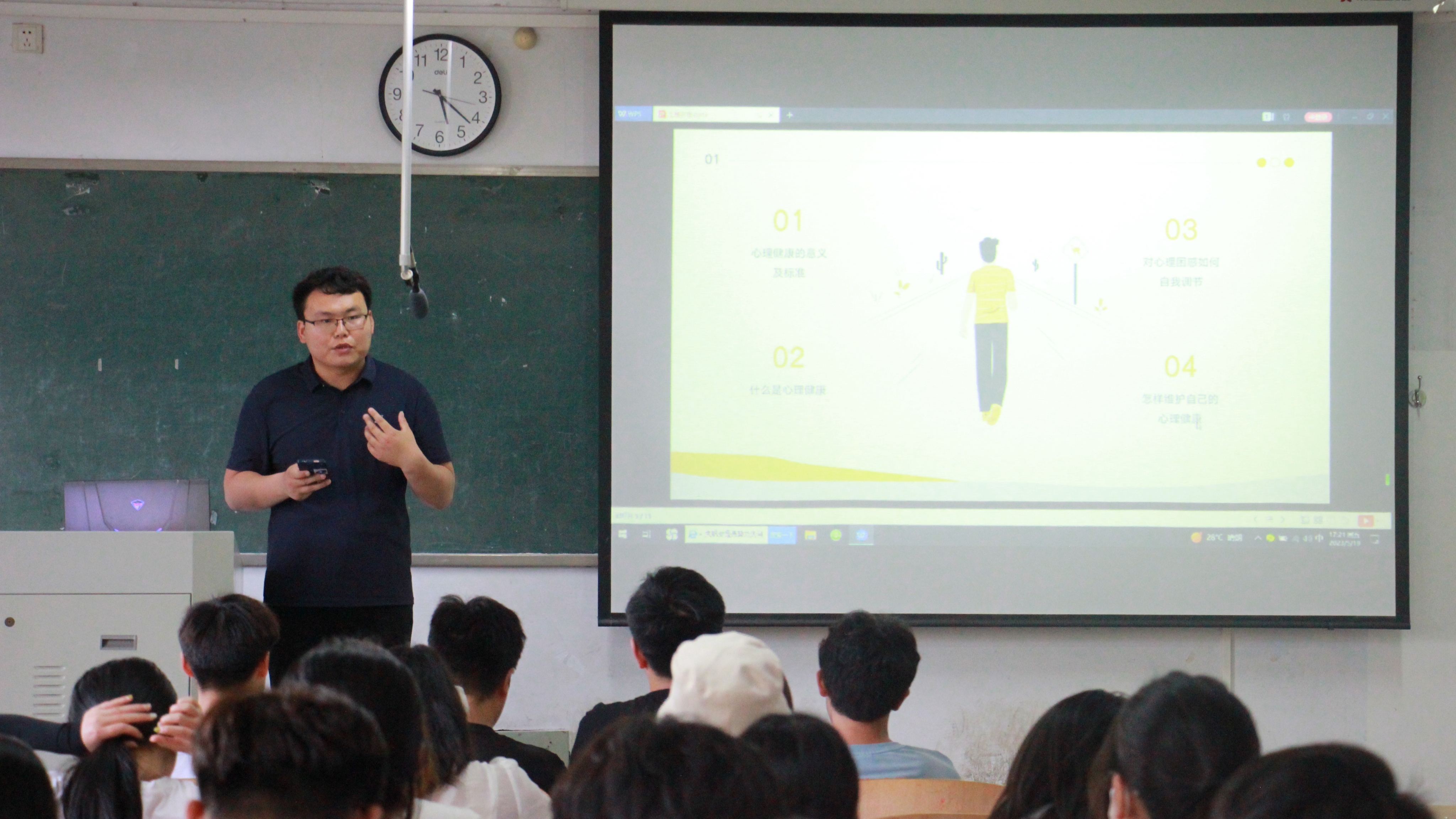 郭继鹏首先从心理健康的教育内容、教育途径、教育原则以及心理健康趣味测验等进行讲述,并引导在场学生积极参与互动讨论。并通过列举一些生活中的事例,使同学们对于什么是心理健康,以及怎样维护心理健康等问题有了更加充分的了解。同时还为大家普及了心理健康的意义及标准等相关专业知识,并介绍了大学生心理健康教育中心和二级心理辅导站的预约方式。