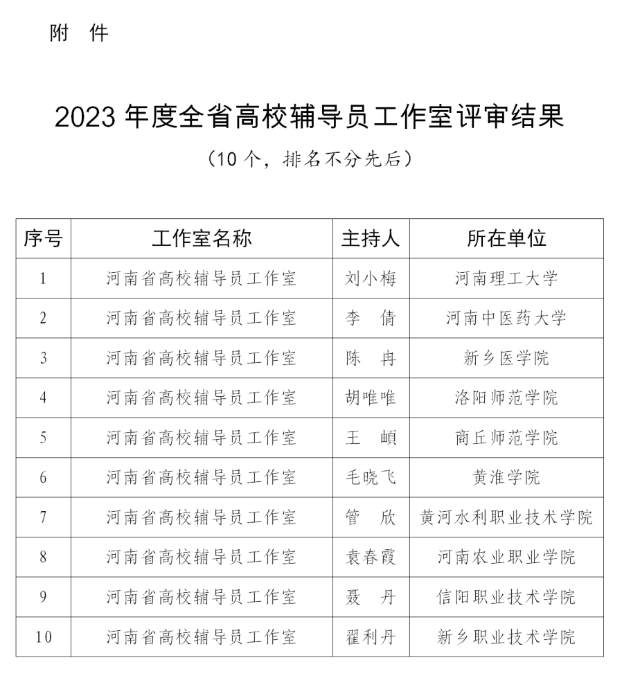 近日,中共河南省委教育工委、河南省教育厅公布《关于2023年度全省高校辅导员工作室评审结果的公示》,我校党委学工部组织申报、天天精品视频免费观看党委副书记王頔主持的项目成功通过评审,获批“河南省高校辅导员工作室”。