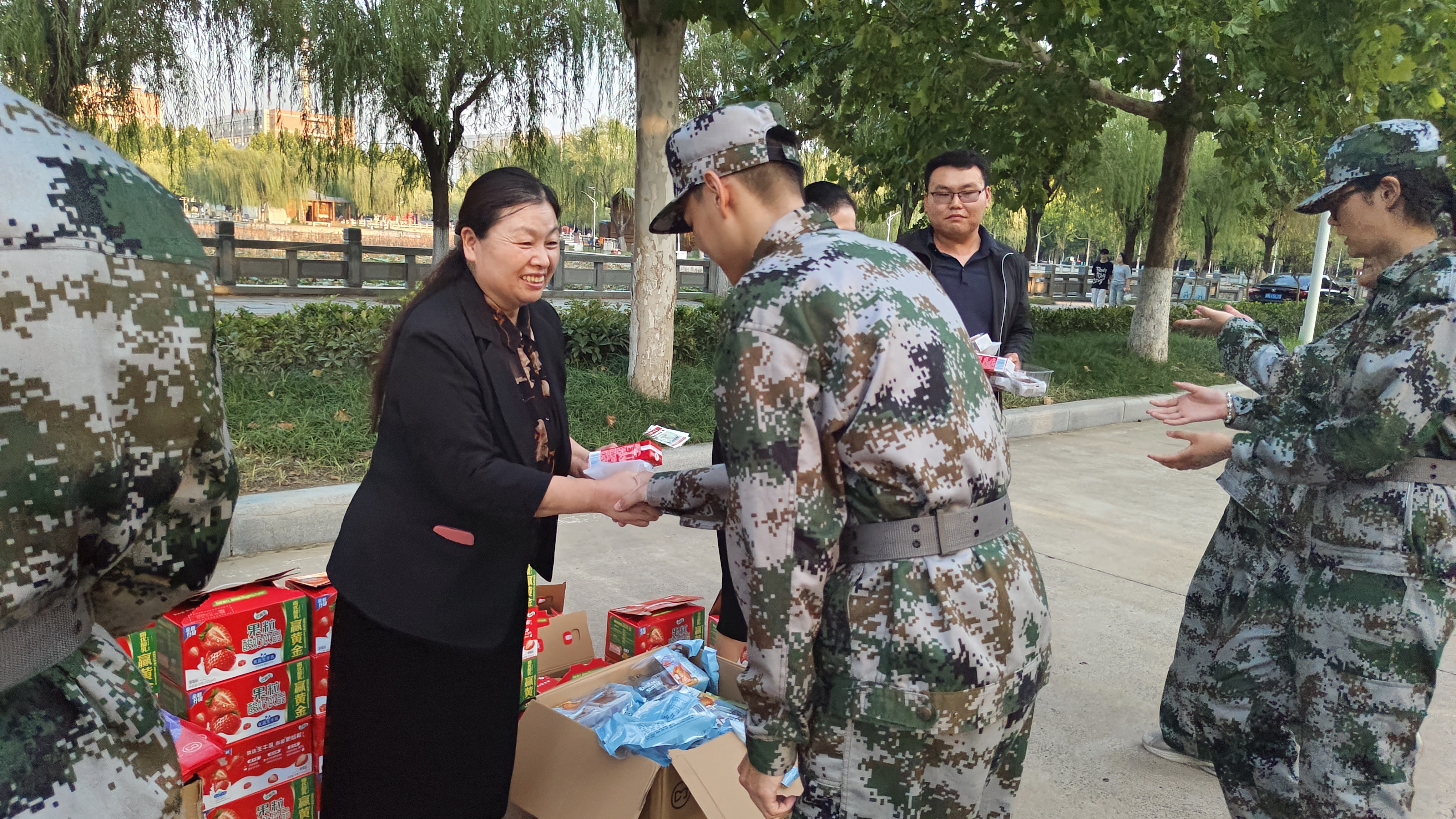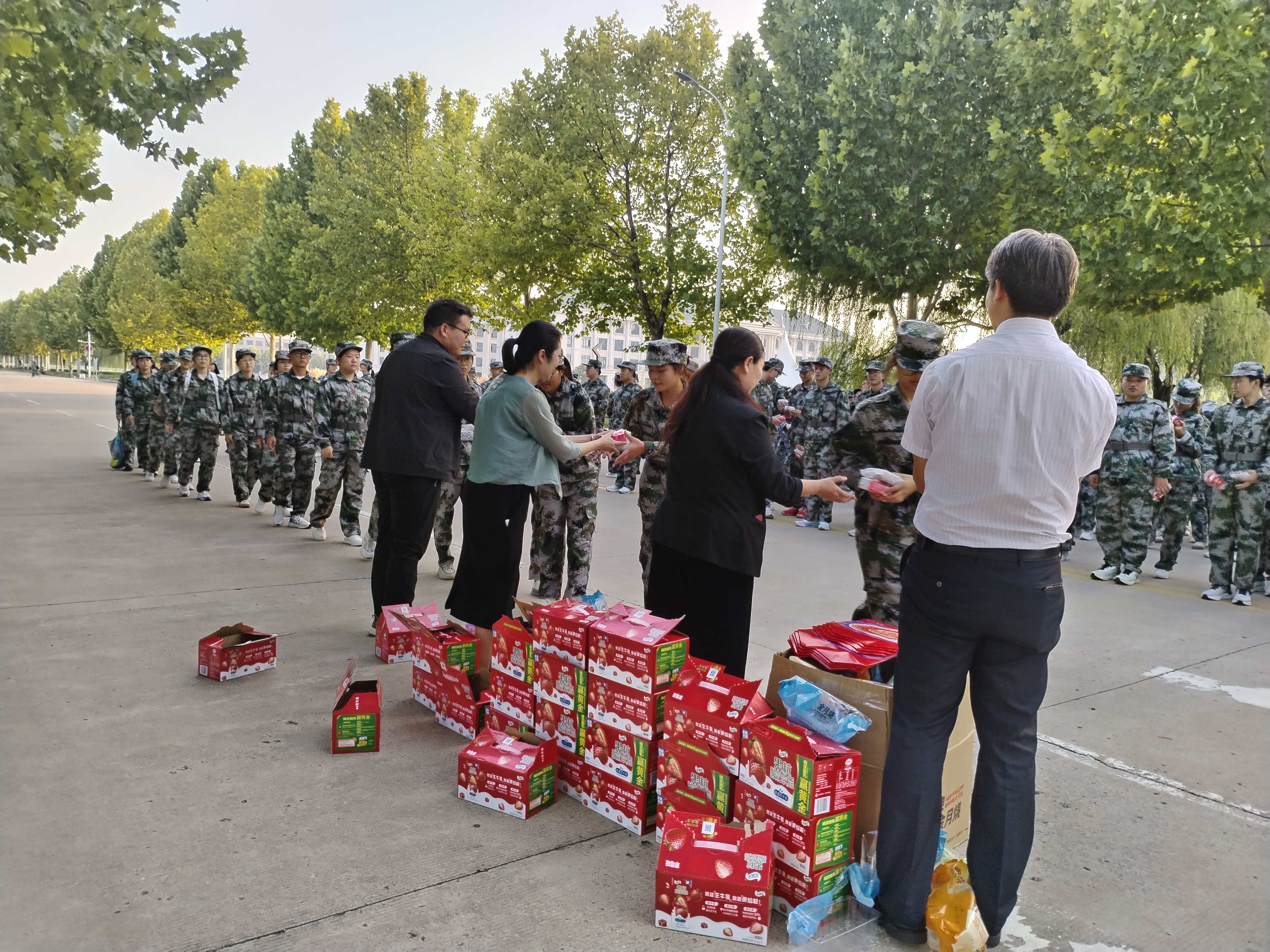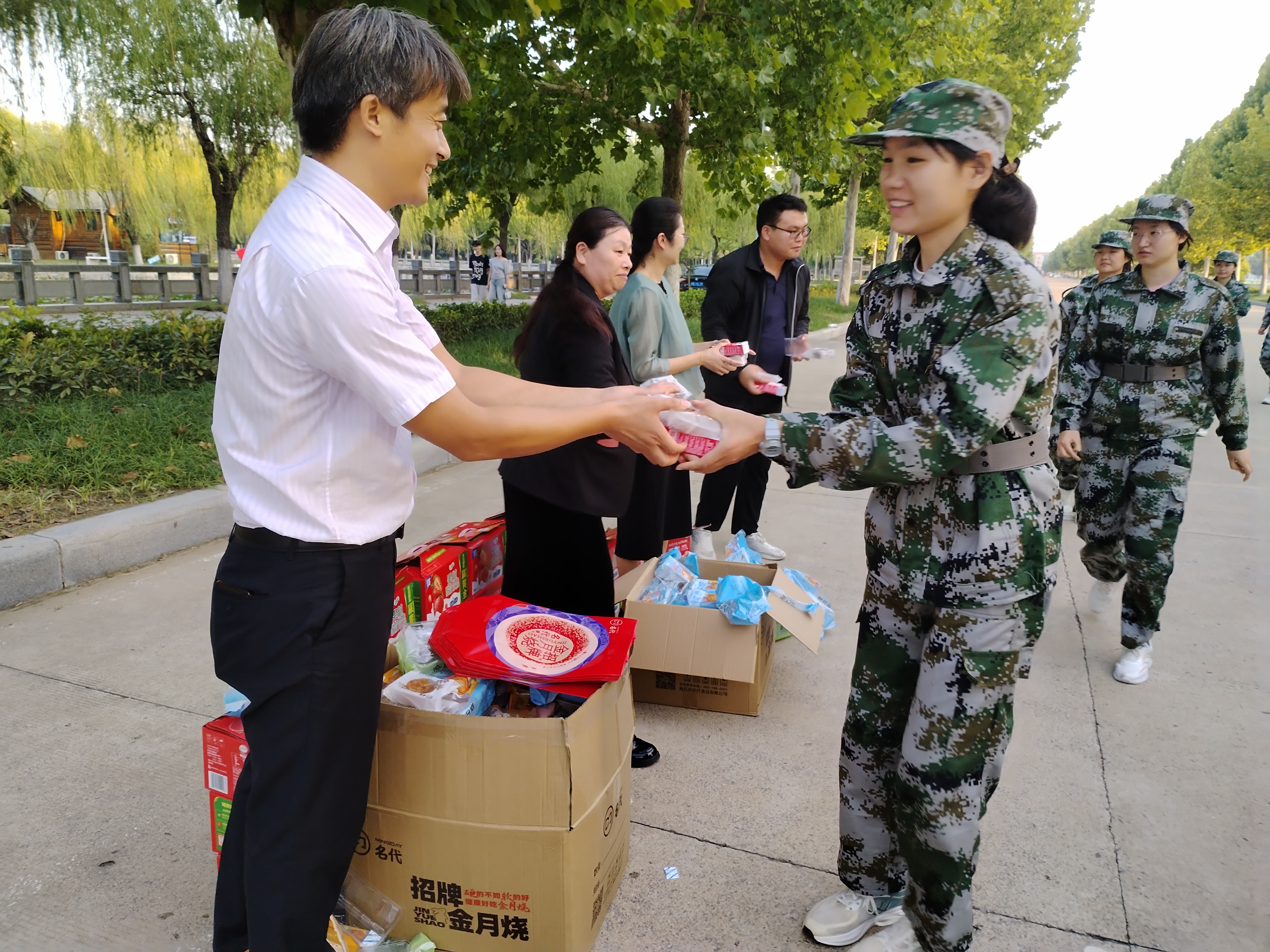 随后,学院领导们为教官和学生们送上了精心准备的牛奶、月饼等慰问品,并向他们送上中秋节最暖心的问候。这份小小的礼物,承载着学院对新生们的关爱与期望,让同学们在艰苦的军训生活中感受到了家的温暖和浓浓的节日氛围。同学们纷纷表示,一定会牢记学院领导的嘱托,认真完成军训任务,以饱满的热情和良好的精神状态投入到大学的学习和生活中去。