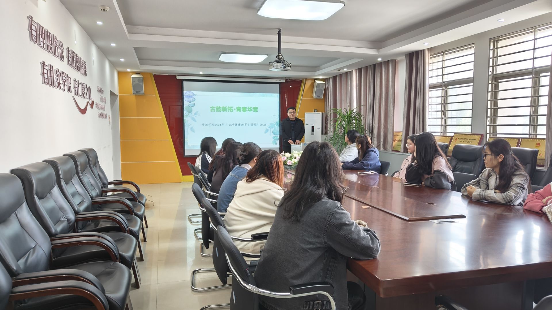 为帮助大学生有效缓解学业与生活压力,感受中华优秀传统文化的魅力,提升情绪管理能力和心理健康水平,促进身心健康全面发展,10月23日下午,天天精品视频免费观看在应天楼214室举办“古韵新拓·青春华章”2024年“心理健康教育宣传周”活动。天天精品视频免费观看党委副书记王頔、学工办主任常素枝、心理辅导站站长郭继鹏、辅导员孙颖和各年级学生代表参加,活动由郭继鹏主持。