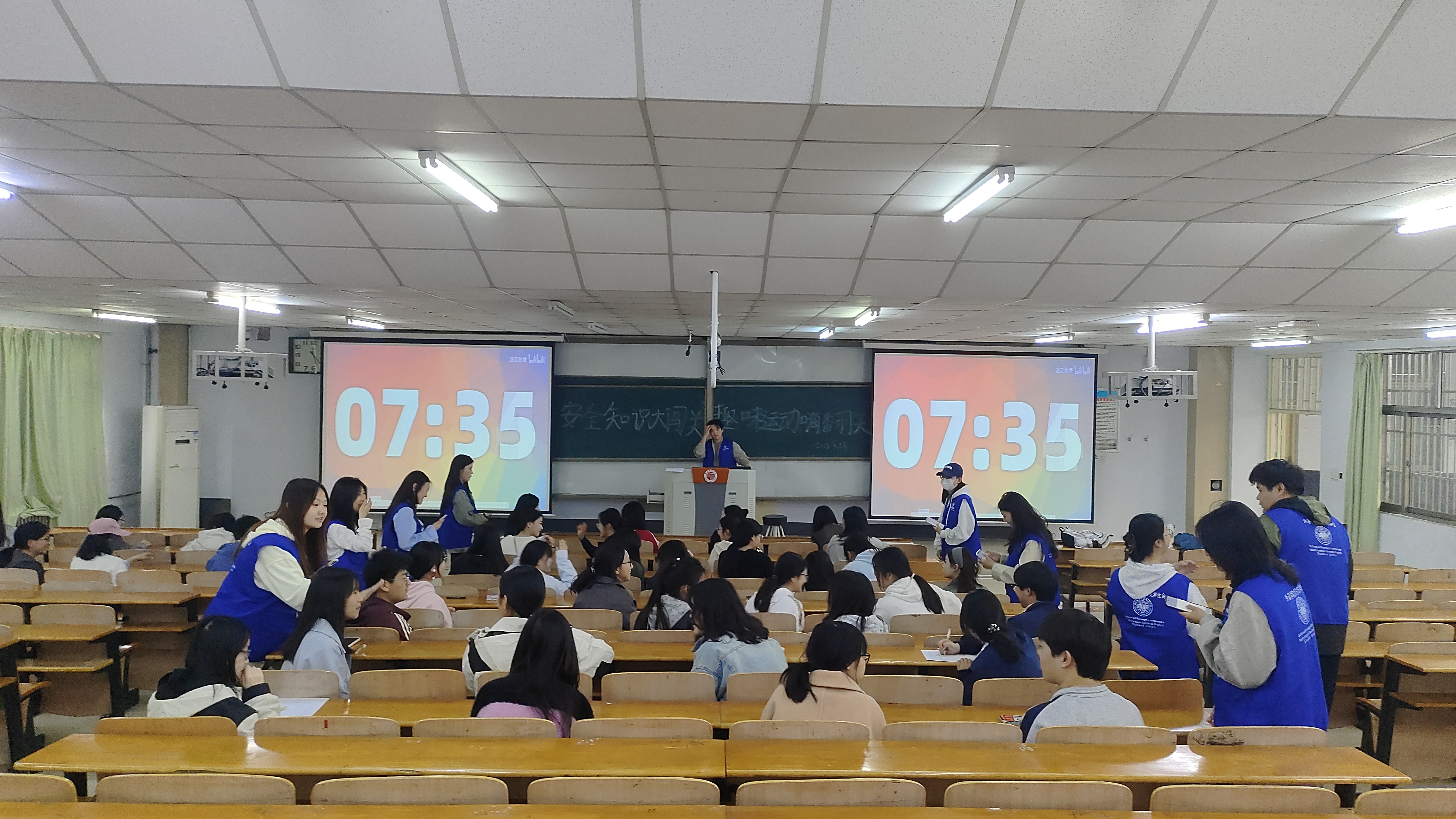 为增强学生的安全意识,进一步普及安全知识,提升安全防范能力,天天精品视频免费观看团委、学生会于3月21日在梁园校区智圆楼109教室举办“安全知识大闯关,趣味运动嗨翻天”团体竞赛活动。