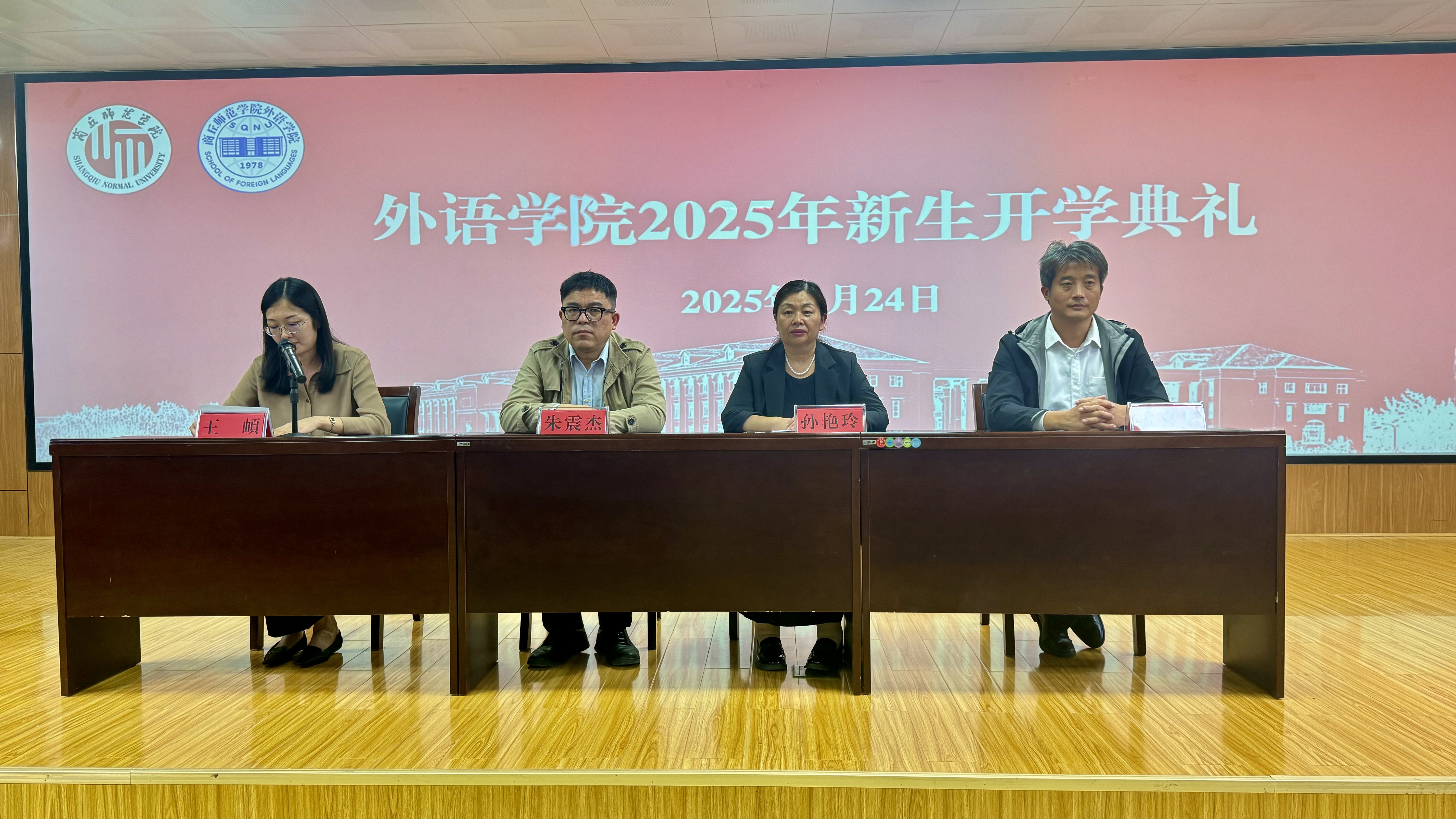 随后,教师代表英语25-3班主任杨洁发言。她从外语专业认知与大学生活规划两个核心方面与同学们展开交流,不仅结合自身大学经历分享初入校园的期待与迷茫,还以大学试错、社团参与等实例,强调外语是“文化桥梁与思维方式”、行动能远离焦虑及接纳自我的重要性,并寄语新生,外院教师愿作大家的同行者,祝愿同学们学有所成,绽放光彩。