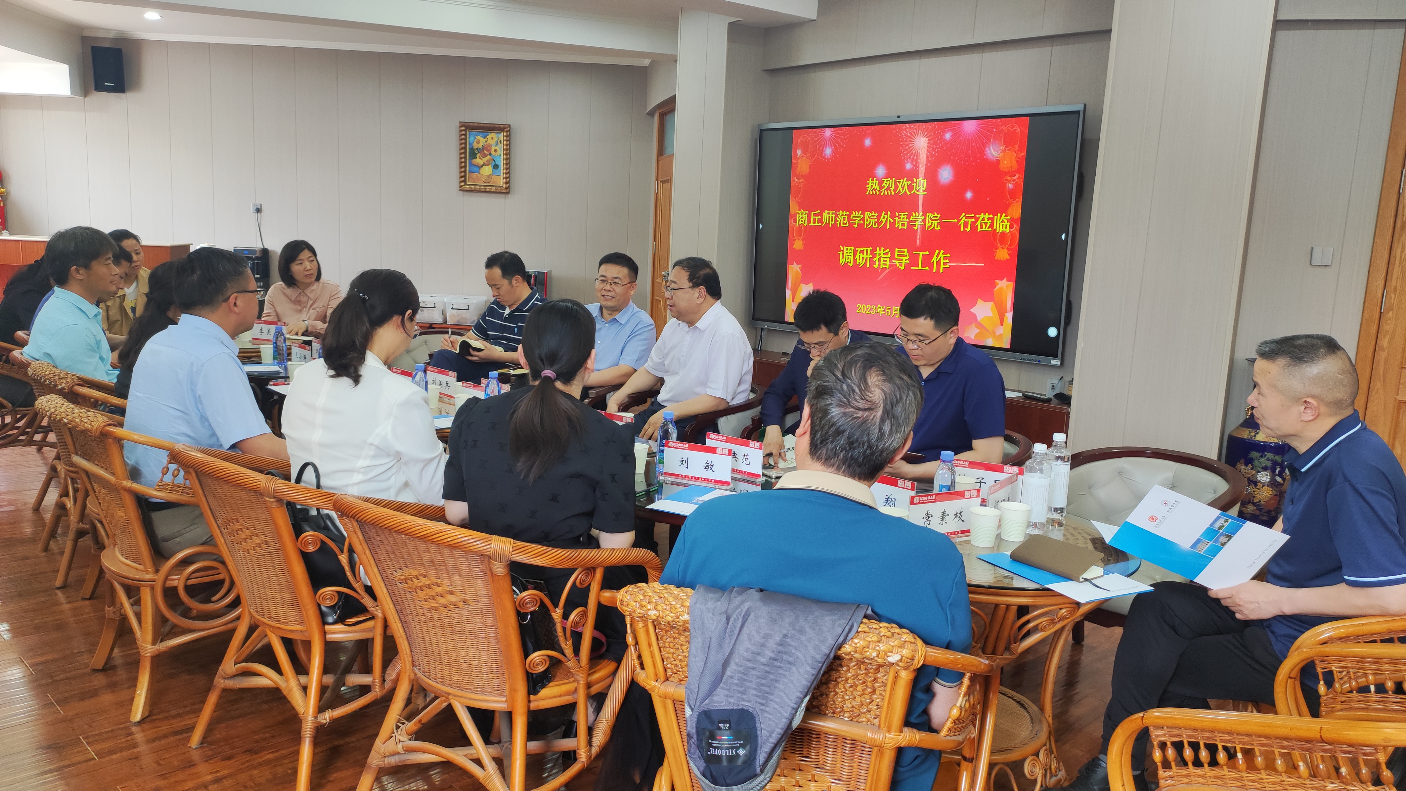 河南师范大学外国语学院院长刘国兵对我院的到访表示热烈欢迎,并就学院概况、办学历史、师资队伍建设、学科专业建设等工作做了详细的介绍。河南师范大学外国语学院副院长张军民具体介绍了英语师范专业认证、本科生人才培养、课程设置等有关工作。
